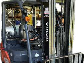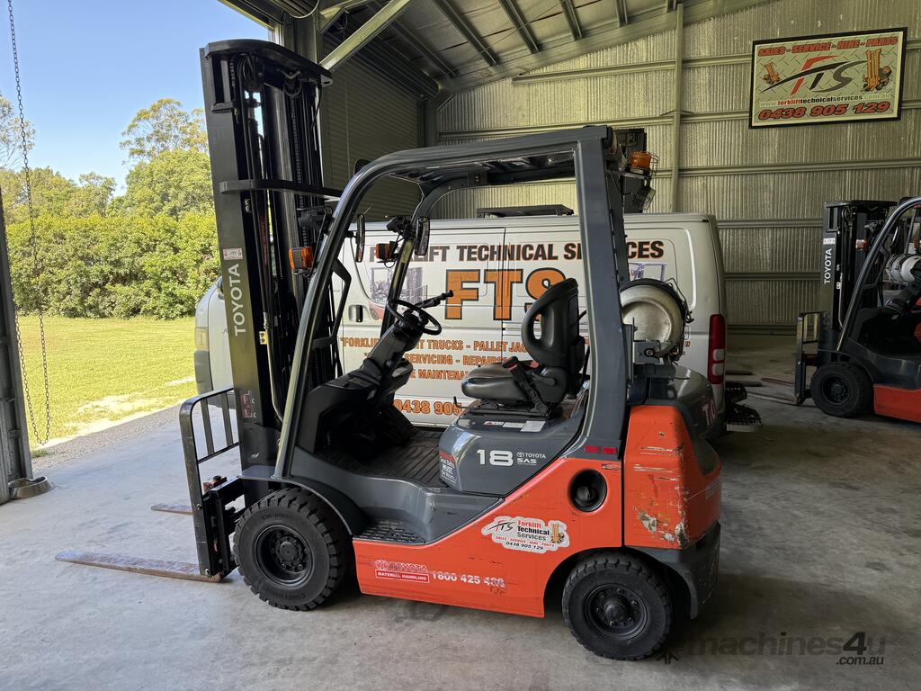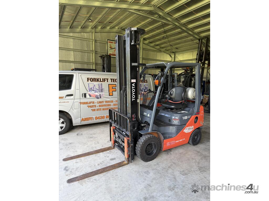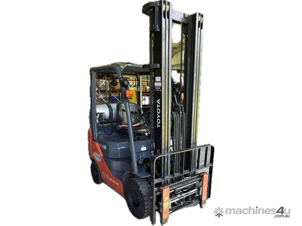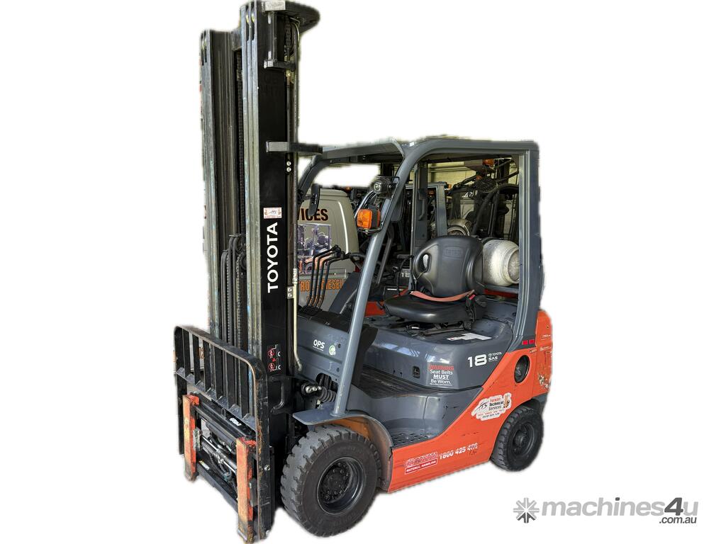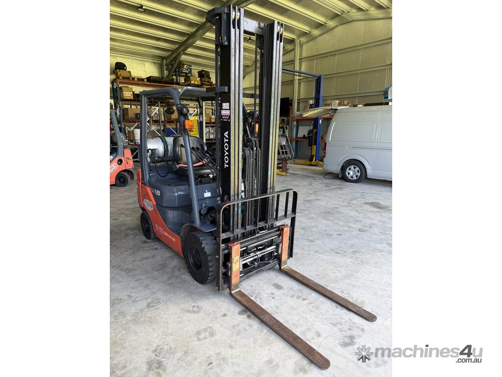 OHS COMPLIANT – WORKSHOP TESTED & FULLY SERVICED. READY TO GO IMMACULATE FORKLIFT TOYOTA 32-8FG18 1.8 TON DELUX 6000mm 3 STAGE MAST WITH YES GENUINE TOYOTA WEIGHT GUAGE & FORK POSITIONER & SIDE SHIFTER.