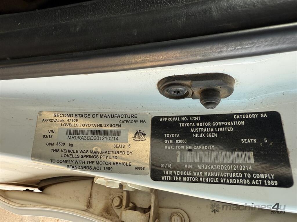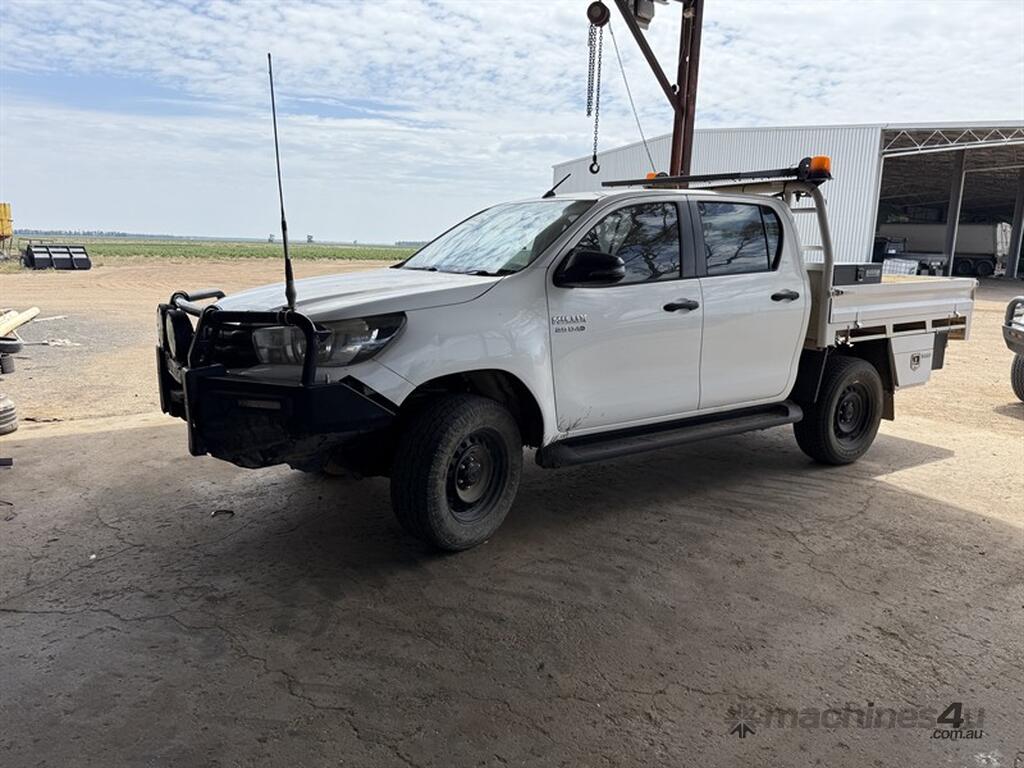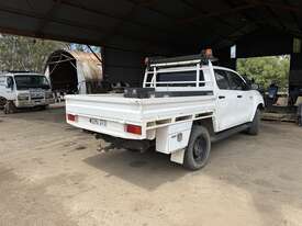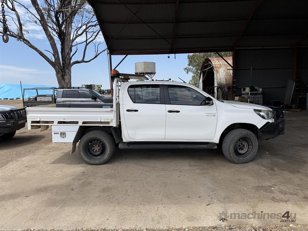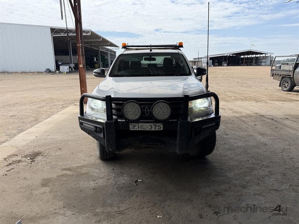 2018 Toyota Hilux SR Dual Cab. Approx 362,000kms 2.8L Diesel, Automatic, 4WD, canvas seat covers, UHF, oversize sign and lights, driving lights, steel tray with dog boxes and water tank (toolboxes in tray will be removed), towbar, steel bullbar (has some damage). Rego exp 14.04.2026. Located at Pallamallawa NSW, available at MRE Auctions online sale.