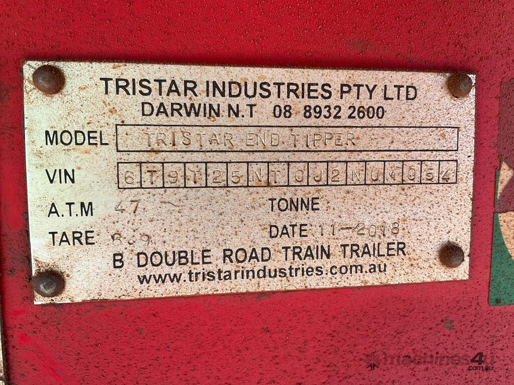 CP: 11/2018,Tristar,End Tipper ,Tri Axle End Tipping Trailer,0 (undefined),Colour: Blue,Rego. No: TQ3867 NT,VIN: 6T9T25NT0J2NUM054,Sold with No Plates,WOVR Status: Repairable Write-Off,Incident Type: Impact