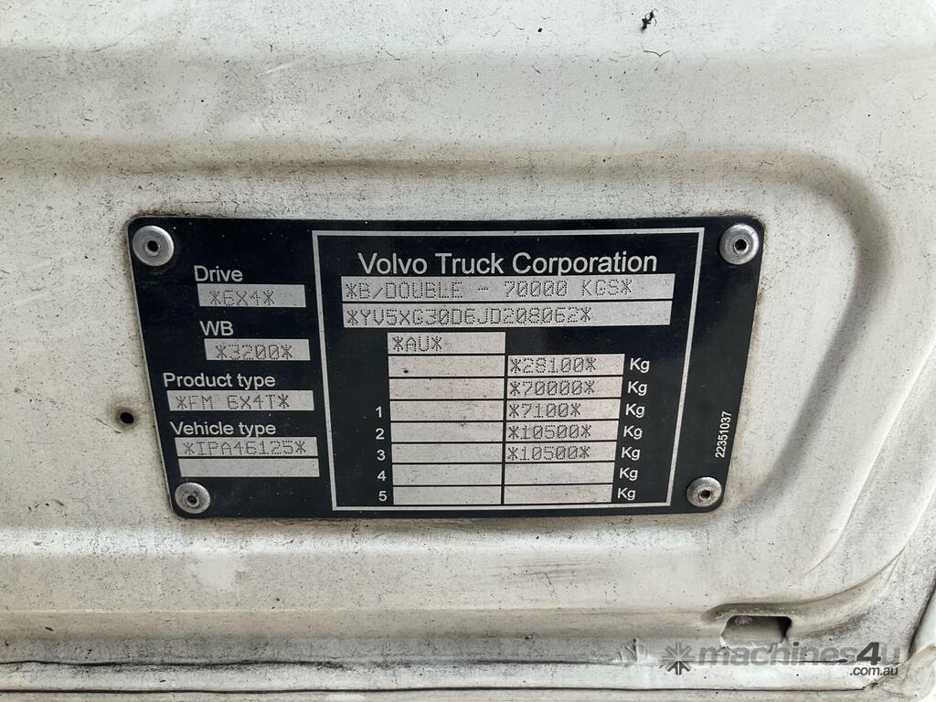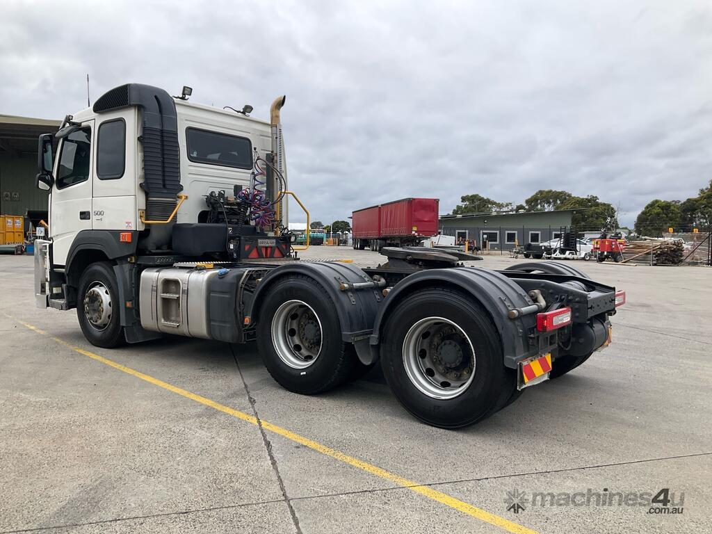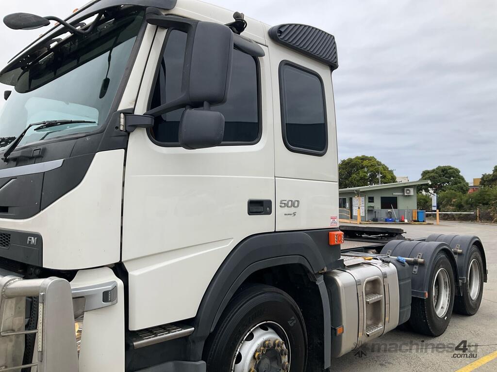 CP: 10/2018,Volvo,FM 500,Prime Mover,Automatic,Air Bag Suspension,Engine #: 832771,Volvo D13,6 Cyl,Diesel,805657 (Kms. Showing on Odometer),14414 (Hrs. Showing on Hour meter),Colour: White,Rego. No: NP(XV68BQ), Unregistered VIC,VIN: YV5XG30D6JD208062,Key No: 266,GVM: 28100,GCM: 70000,Sold with No Plates,Key No: 266