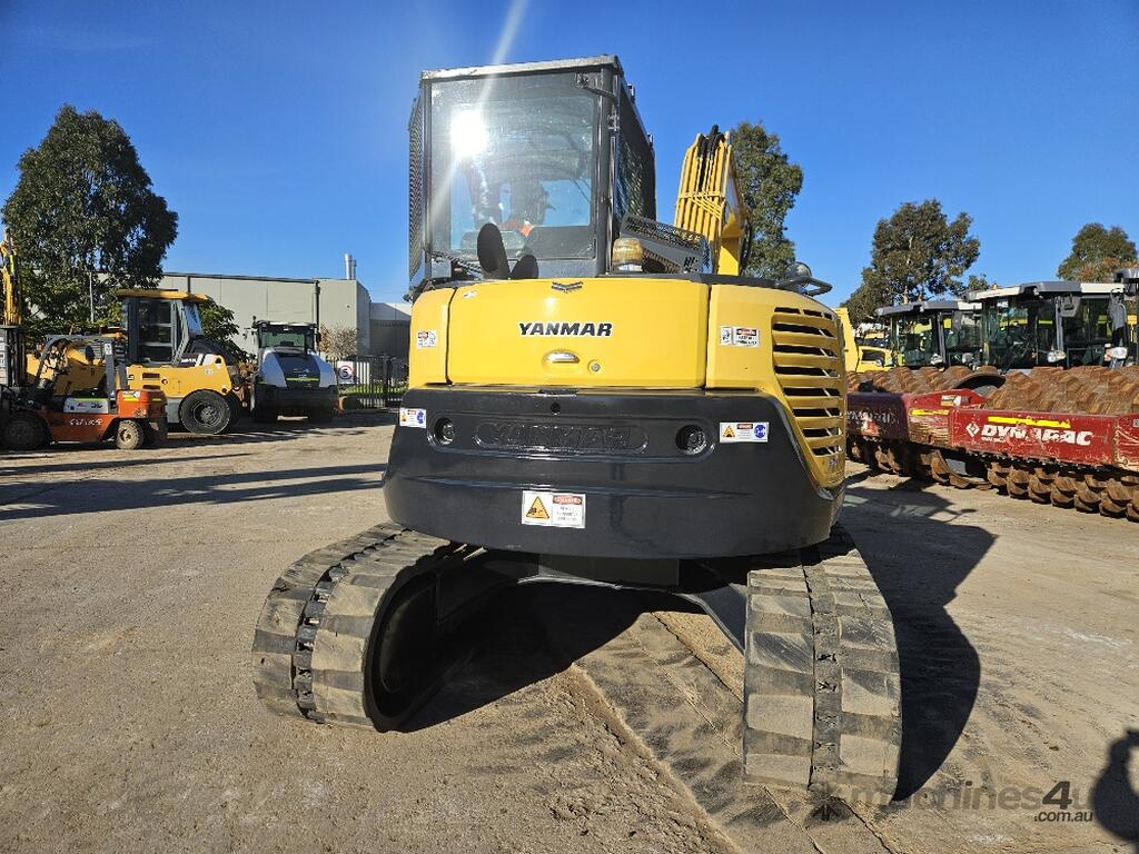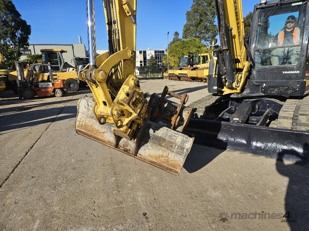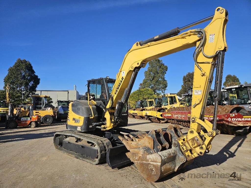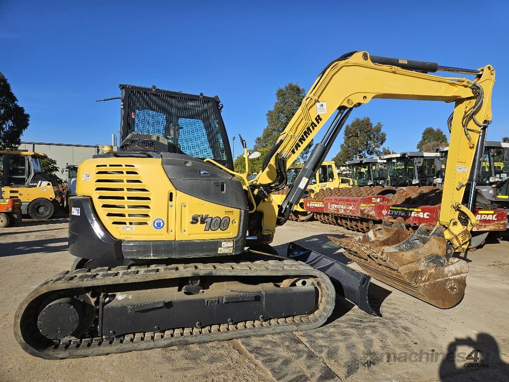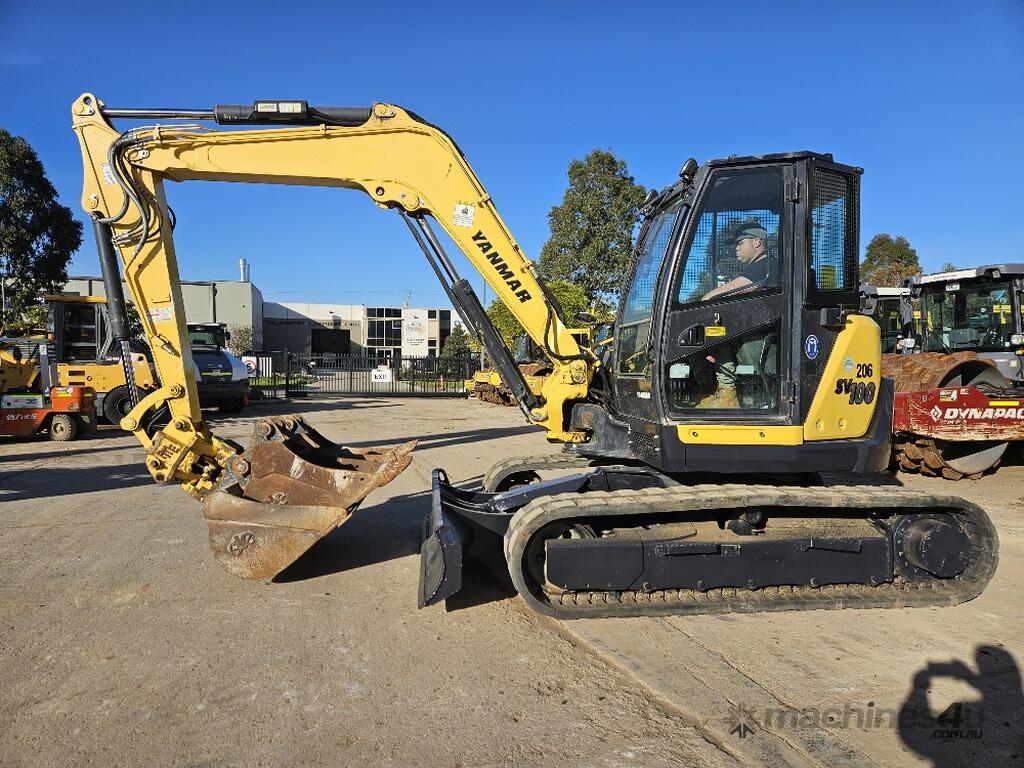 2018 YANMAR SV100-2 EXCAVATOR WITH AME TILTING HITCH, 3316 HRS, FULL CIVIL SPEC WITH UHF RADIO, SAFETY BEACON, 10t OPERATING WEIGHT, REDUCED TAIL SWING, RUBBER TRACKS, SWIVEL BOOM, FULL A/C CABIN WITH ROPS, DOZER BLADE, AUXILIARY HYDRAULICS WITH PROPORTIONAL CONTROLS, AUTO IDLE FUNCTION, TRAVEL ALARMS, HYDRAULIC TILTING QUICK HITCH, 450 & 600mm DIG BUCKETS AND MUD BUCKET. ALUMINIUM VANDAL COVERS, RISK ASSESSMENT, FULLY SERVICED AND READY TO WORK. AUSTRALIAN DELIVERED JANUARY 2019, 3-MONTH DRIVETRAIN WARRANTY