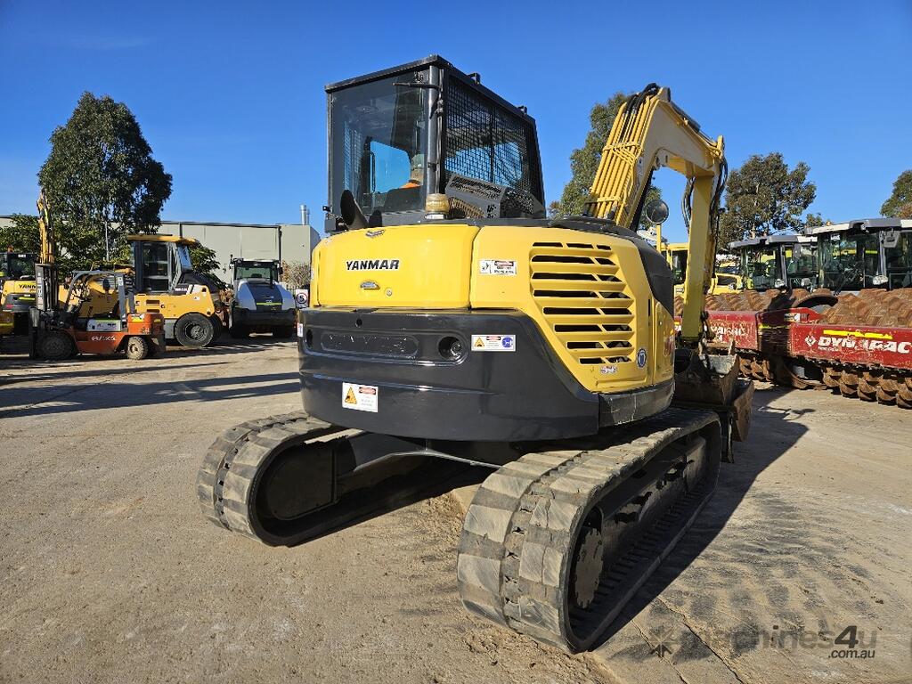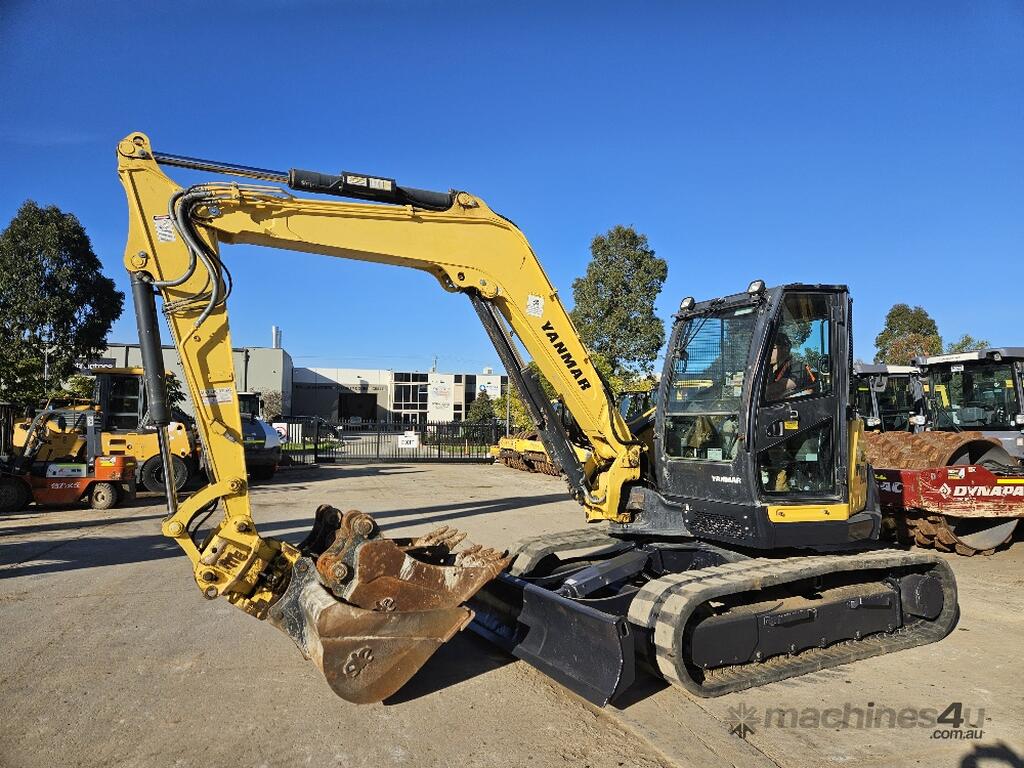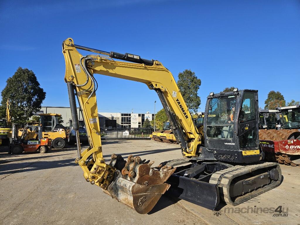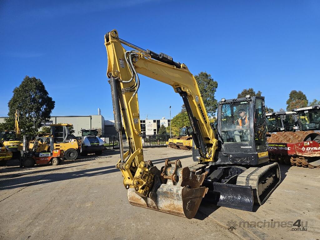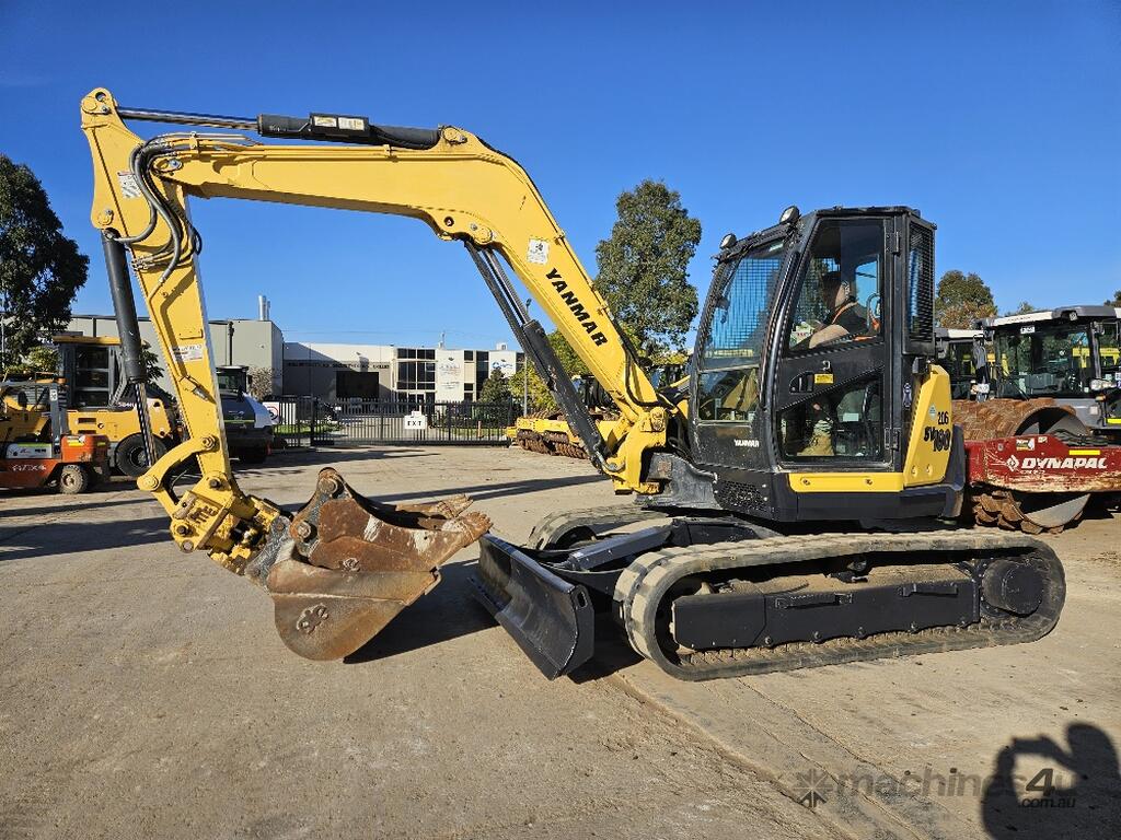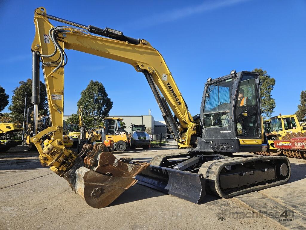 2018 YANMAR SV100-2 EXCAVATOR WITH AME TILTING HITCH, 3316 HRS, FULL CIVIL SPEC WITH UHF RADIO, SAFETY BEACON, 10t OPERATING WEIGHT, REDUCED TAIL SWING, RUBBER TRACKS, SWIVEL BOOM, FULL A/C CABIN WITH ROPS, DOZER BLADE, AUXILIARY HYDRAULICS WITH PROPORTIONAL CONTROLS, AUTO IDLE FUNCTION, TRAVEL ALARMS, HYDRAULIC TILTING QUICK HITCH, 450 & 600mm DIG BUCKETS AND MUD BUCKET. ALUMINIUM VANDAL COVERS, RISK ASSESSMENT, FULLY SERVICED AND READY TO WORK. AUSTRALIAN DELIVERED JANUARY 2019, 3-MONTH DRIVETRAIN WARRANTY