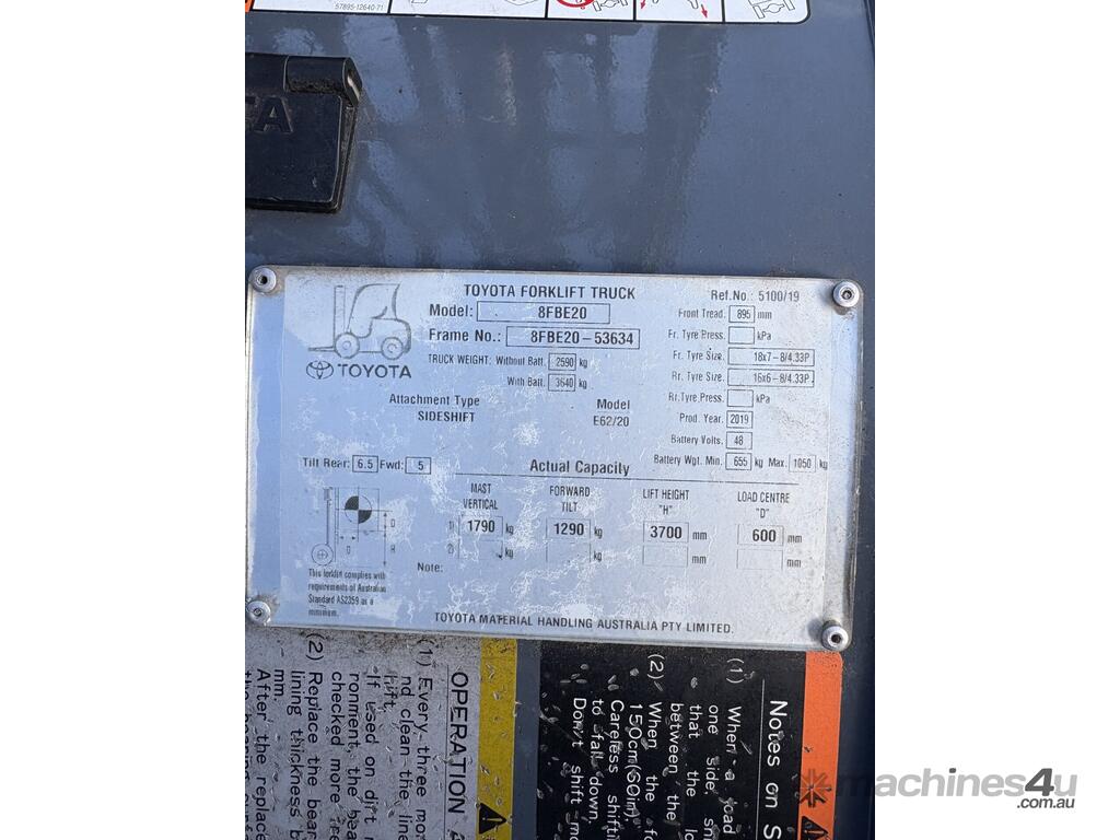 Built for precision and long-term performance, the 2019 Toyota 2.0t Container Mast Electric Forklift combines trusted Toyota engineering with modern electric efficiency. Featuring a 2022 battery, side shift, and an integrated weight gauge, it’s designed to deliver smooth handling and exceptional control in warehouse environments. With only 1,095 operating hours, a fresh service, and a 12-month warranty covering both the forklift and battery, this model is ready to work hard from day one.