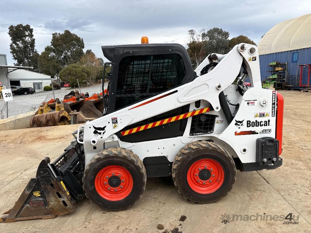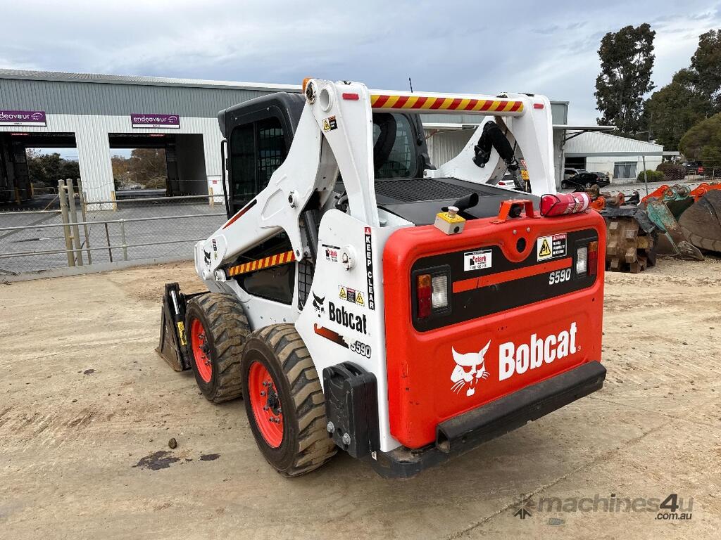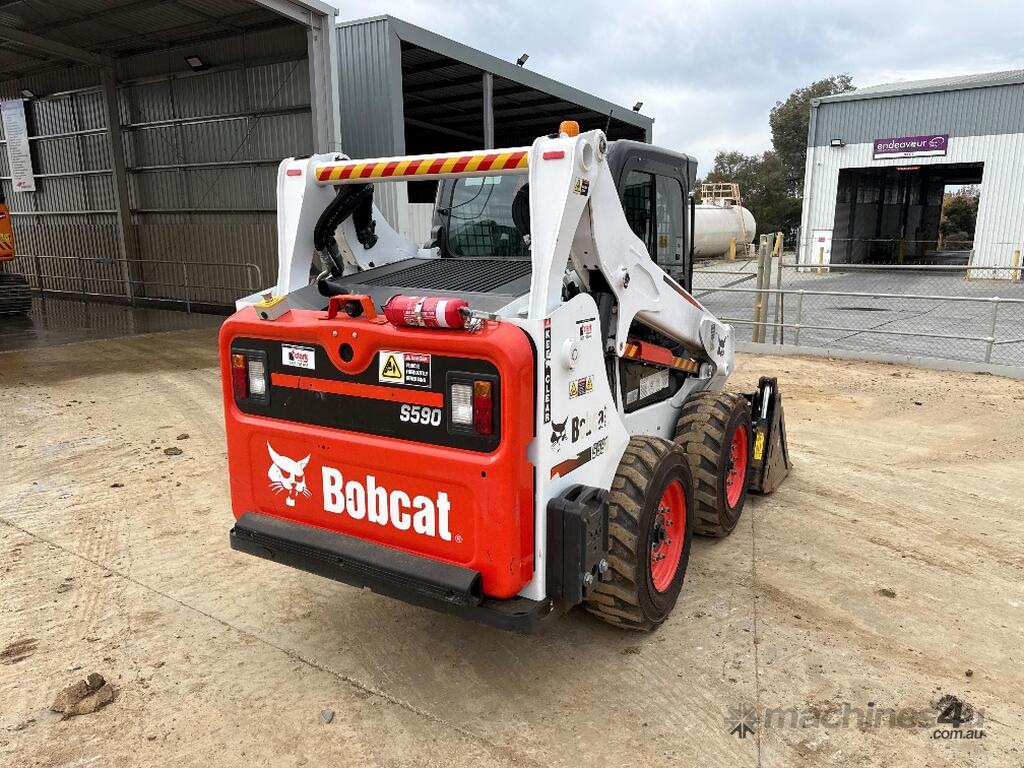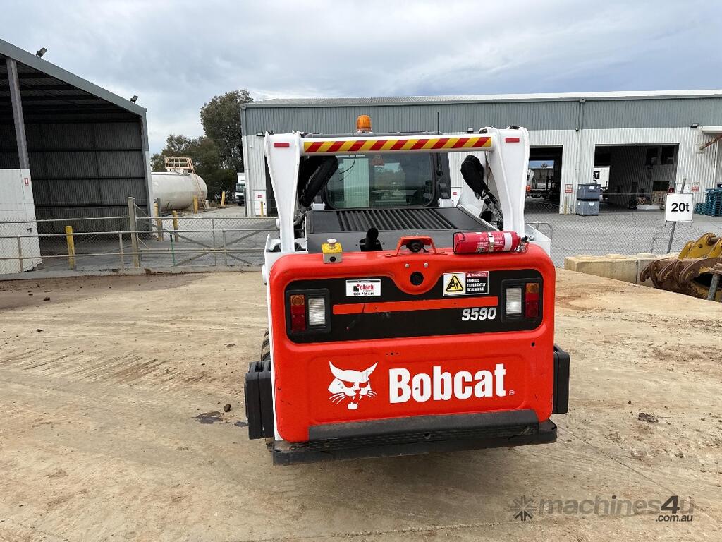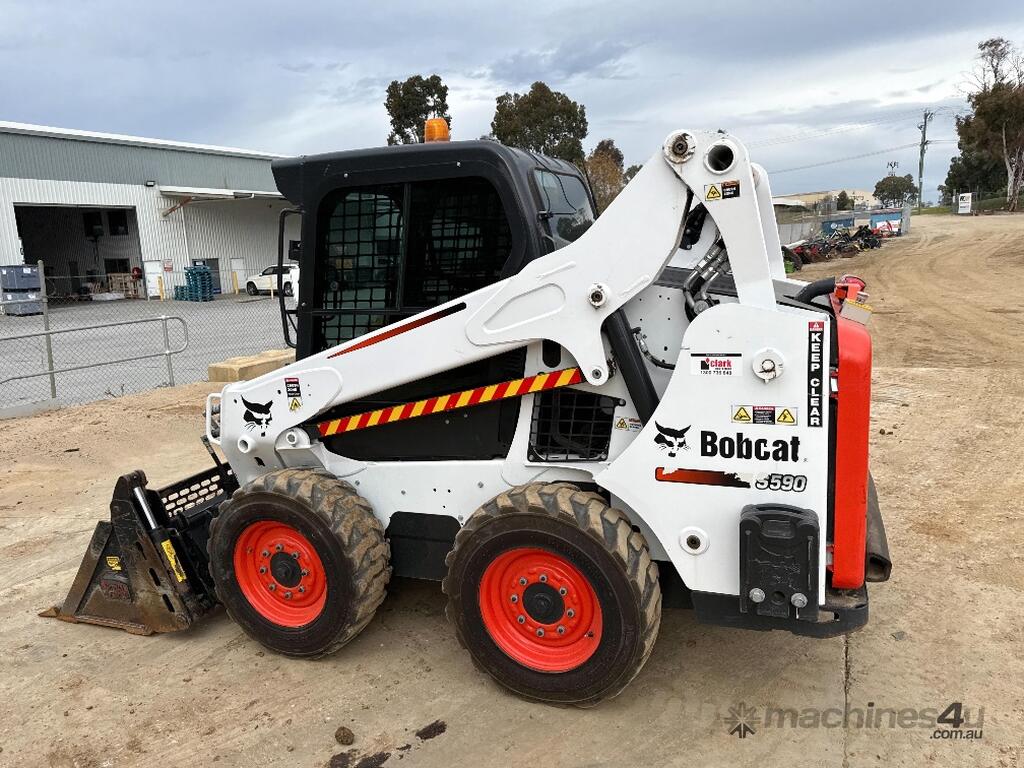 USED 2019 BOBCAT S590 SKID STEER LOADER (S177) WITH LOW 493 HRS IN EXCELLENT CONDITION WITH FULL A/C CABIN, AUXILIARY HYDRAULICS, RIDE CONTROL, GOOD RUBBER TYRES, 4 IN 1 BUCKET, 66HP TURBO DIESEL, VERTICAL LIFT LOADER ARMS, FULL A/C PRESSURISED CABIN WITH ROPS, HYDRAULIC QUICK HITCH, PREMIUM CAB OPTIONS, 2 SPEED TRAVEL, REAR VIEW CAMERA, WORK LIGHTS, BT RADIO, UHF RADIO, BATTERY ISOLATOR, E-STOPS, JOYSTICK CONTROLS, EXTRA COUNTERWEIGHTS, 2991KG OPERATING WEIGHT AND RISK ASSESSMENT.