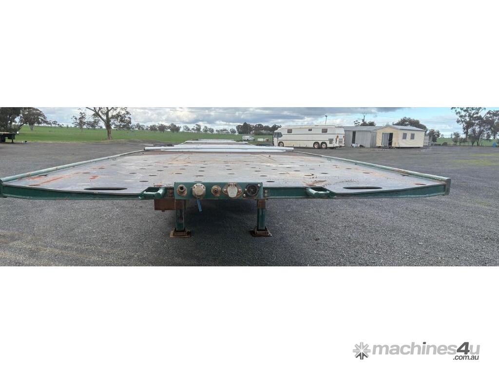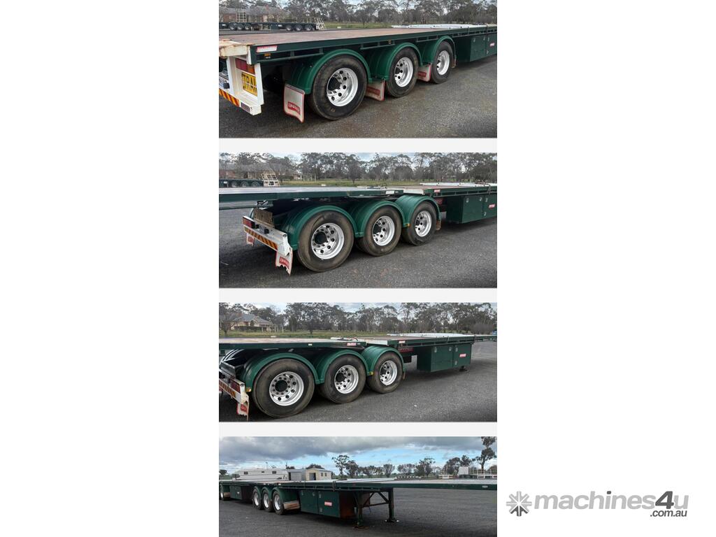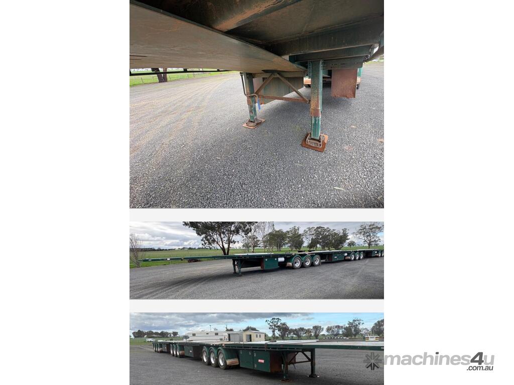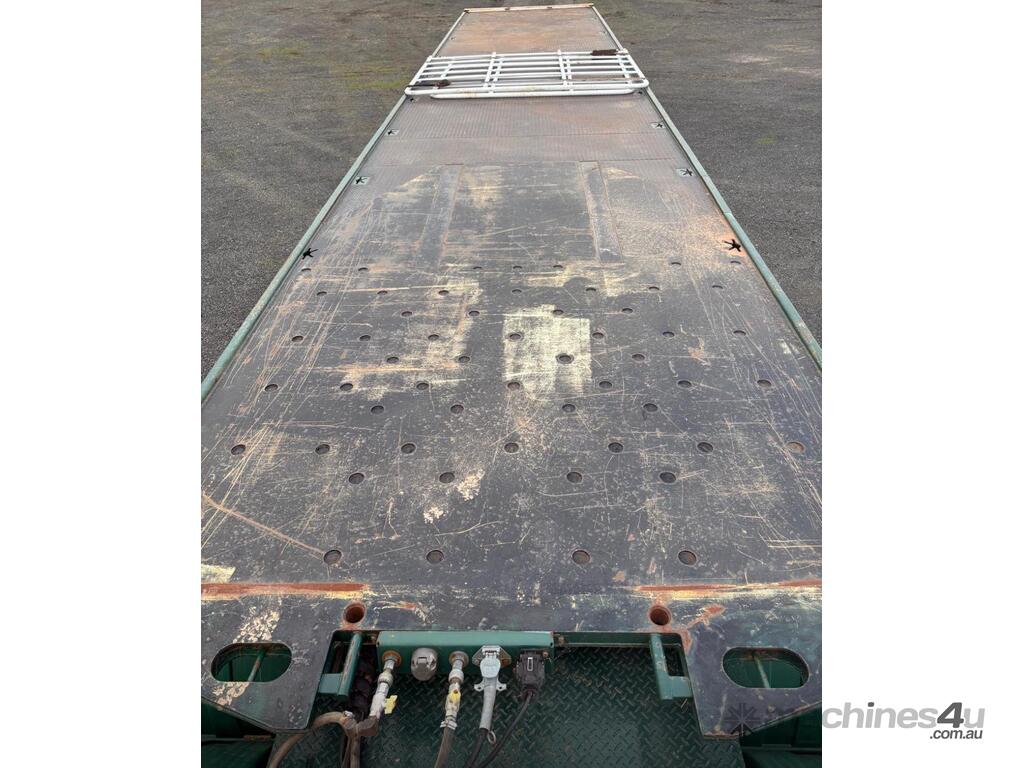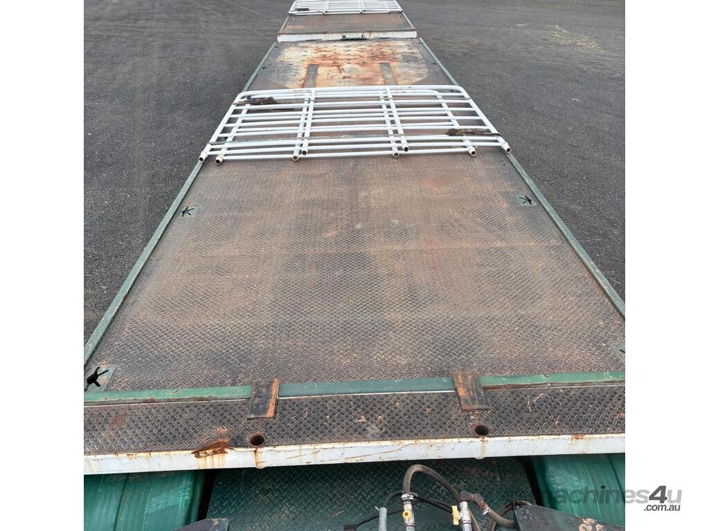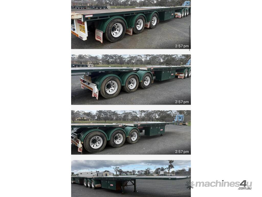 Texan neck flat deck set - 14/14/22 pallet combination, BPW AL axles suspension, D36 air bags , Alcoa ultra 1 rims , Bridgestone 168 tyres ,jumbo toolboxes, new front/rear hurdles , water tanks , jost legs & greaseless turntables, ring feeder in rear trailer, fully welded floors with multiple chain points , extra floor under runners, 250mm removable deck extensions, dual position king pins, dual electric connections , raise/lower valves , right way scales on all trailers 21 tonne combined tare weight - 59 tonne combined payload.