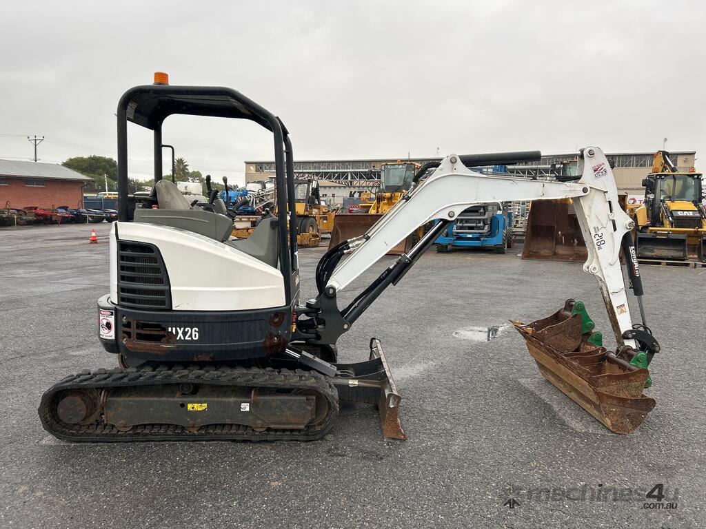 CP: CIRCA 2019,Bobcat,E26,Excavator (Rubber Tracked),4 Cyl,Diesel,Odometer not visible,1791 (Hrs. Showing on Hour meter),Colour: White,Unregistered,Serial No: B3JE15831,Sold with No Plates,Key No: P55