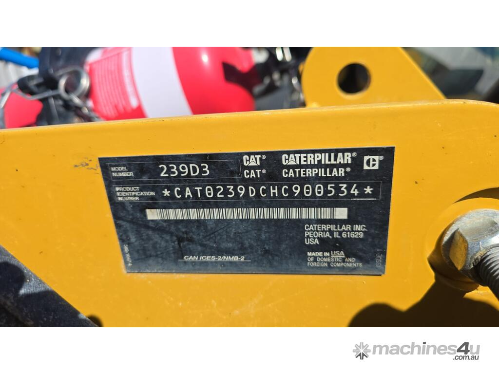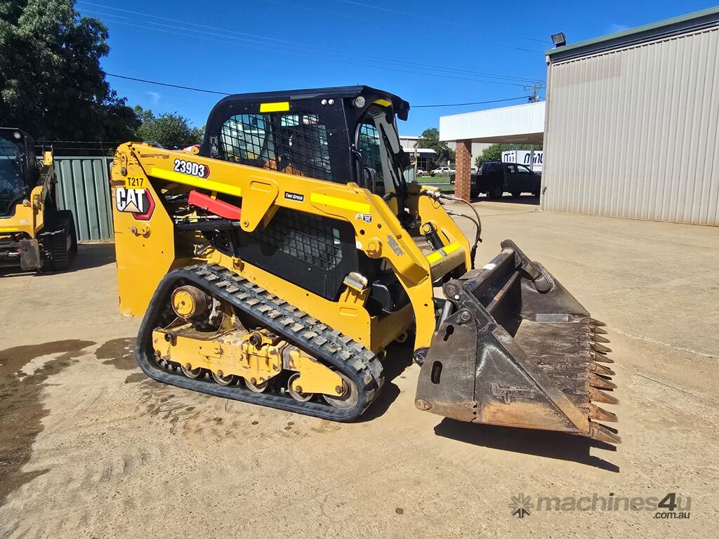 USED 2019 CAT 239D3 SKID STEER LOADER (T686) WITH 2195 HOURS IN GOOD CONDITION WITH RUBBER TRACKS, 4 IN 1 BUCKET, 67HP TURBO DIESEL, RADIAL LIFT LOADER ARMS, FULL A/C PRESSURISED CABIN WITH ROPS, HYDRAULIC QUICK HITCH, PREMIUM CAB OPTIONS, HEATED AIR RIDE SEAT, 2 SPEED TRAVEL, REAR VIEW CAMERA, WORK LIGHTS, BT RADIO, UHF RADIO, BATTERY ISOLATOR, E-STOPS, AUXILIARY HYDRAULICS, JOYSTICK CONTROLS, 3372KG OPERATING WEIGHT AND RISK ASSESSMENT.