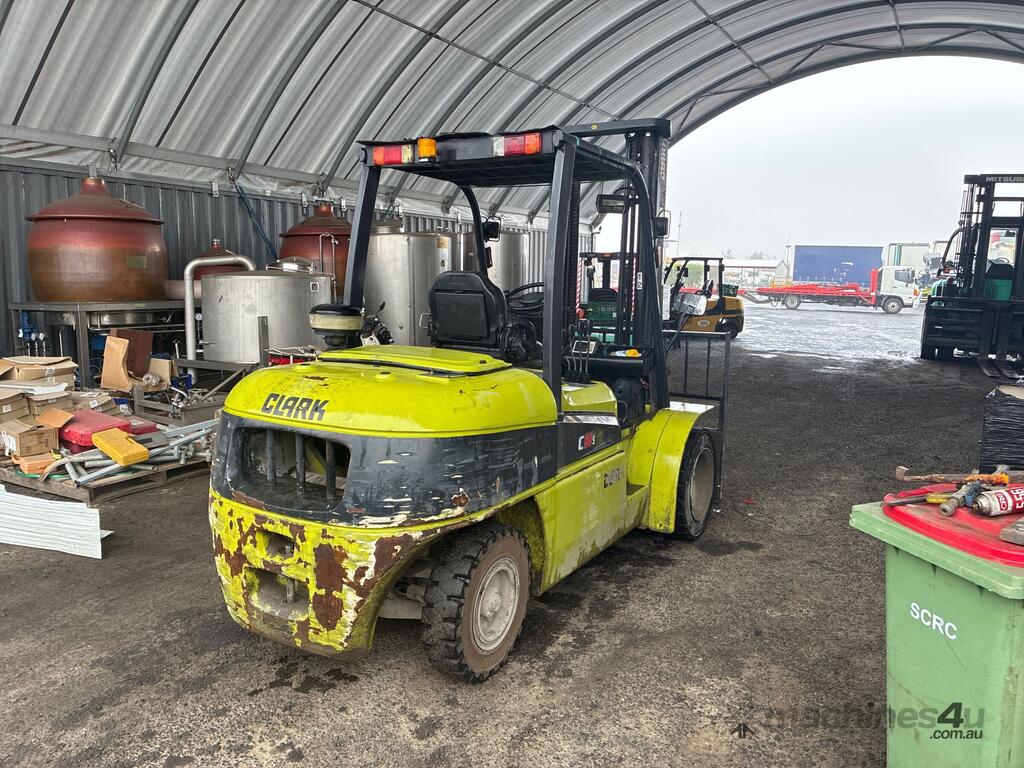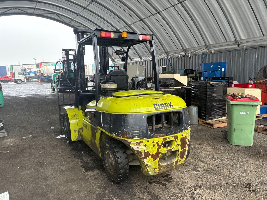 CP: CIRCA 2019,Clark,C50SD,Forklift,4 Cyl,Diesel,Odometer not visible,9327 (Hrs. Showing on Hour meter),Colour: Green,Unregistered,Serial No: P455D 0575 9888 CNF,Sold with No Plates,Key No: 167