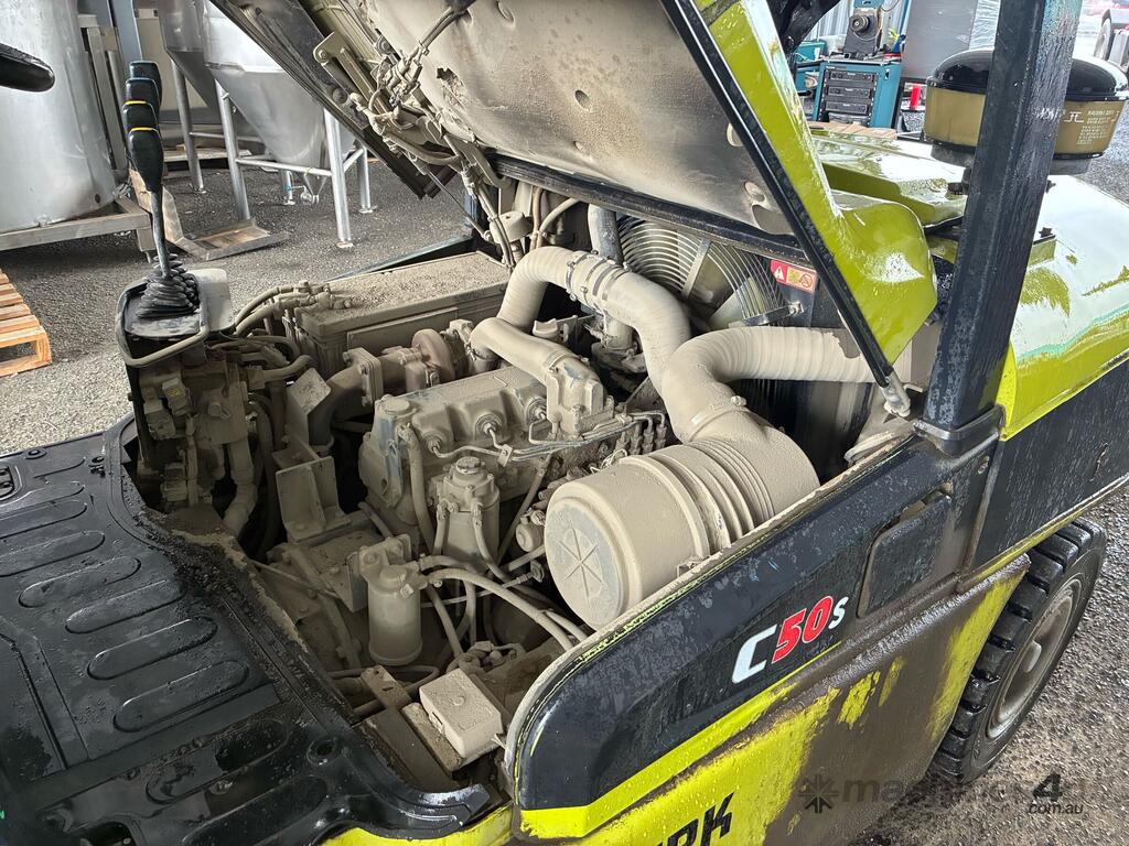 CP: CIRCA 2019,Clark,C50SD,Forklift,4 Cyl,Diesel,Odometer not visible,9436 (Hrs. Showing on Hour meter),Colour: Green,Unregistered,Serial No: P455D 0576 9888 CNF,Sold with No Plates,Key No: 160