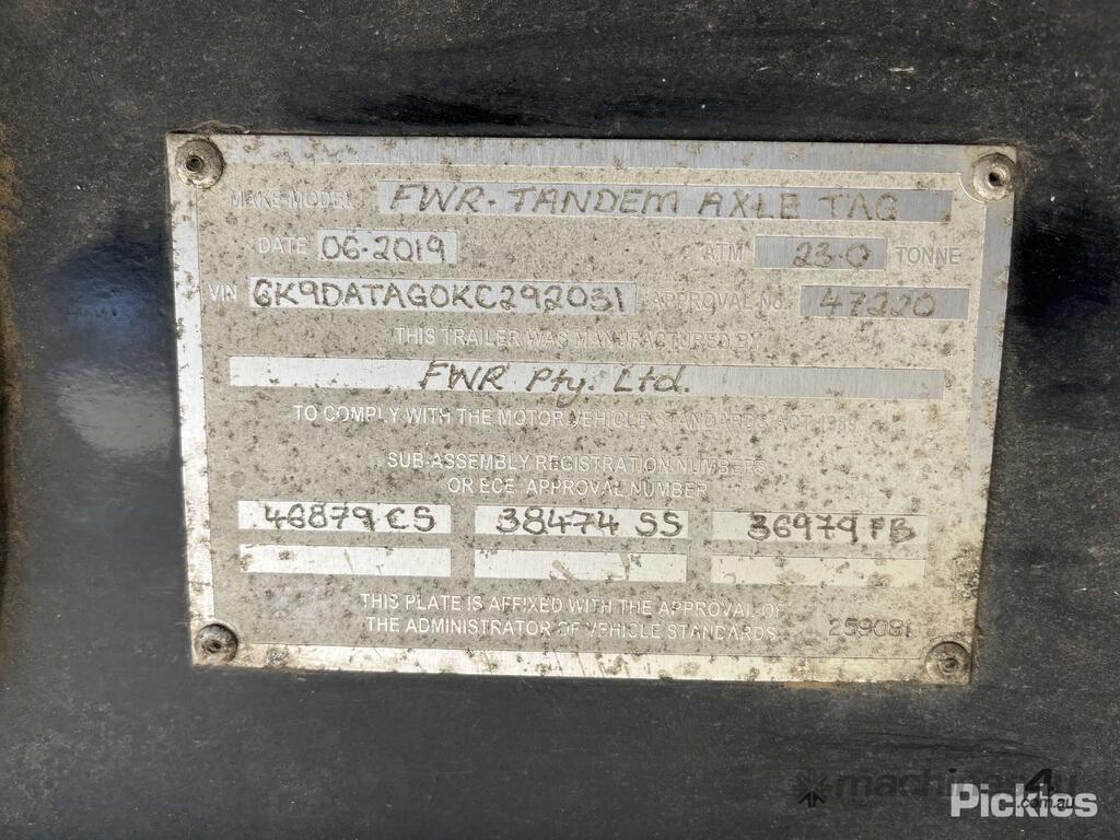 CP: 06/2019,Built: 06/2019,FWR,Tandem Axle Tag Trailer ,0 (undefined),Colour: Black,Rego. No: YN25MZ NAT,VIN: 6K9DATAG0KC292031,Sold with No Plates