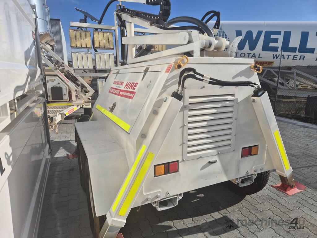 Designed for durability and mobility, the unit features electric over-hydraulic control, 16" Trac wheels with 235/R16 tyres, and a maximum towing speed of 80km/h. Built to withstand the elements, it’s rated for 100km/h wind conditions and operates quietly at 68dB at 7m.