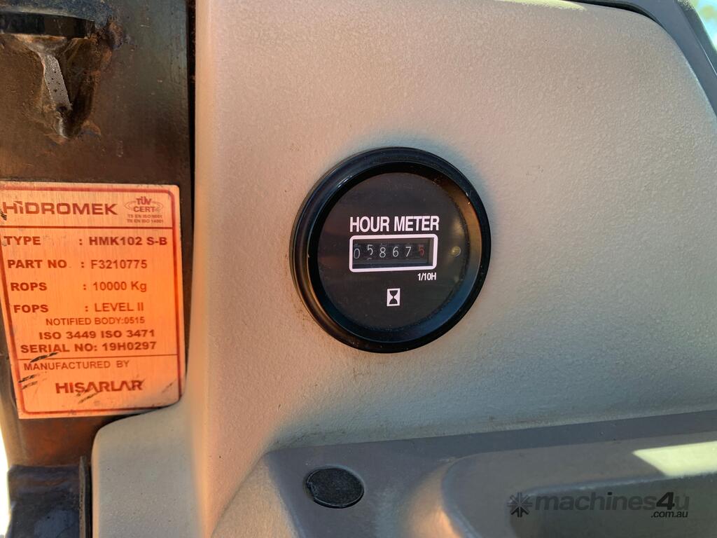CP: CIRCA 2019,Hidromek,HMK102B,Loader/Backhoe,Engine #: NM75621U316586D,4.4 Ltr,4 Cyl,Diesel,Turbo,Odometer not visible,5867 (Hrs. Showing on Hour meter),Colour: White,Rego. No: NP(760306C), Unregistered QLD,Serial No: HMK102BKT2B040467,Sold with No Plates
