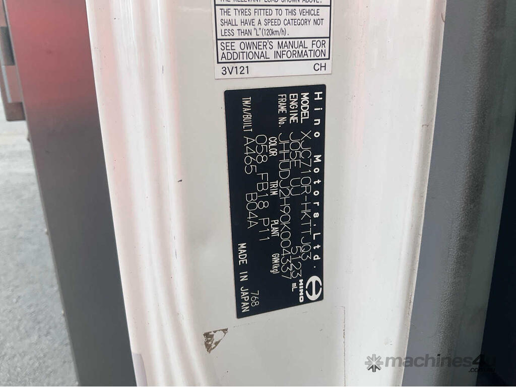 CP: 04/2019,Hino,300 series,Service Body Day Cab,Automatic,Spring,4 Cyl,Diesel Turbo,189828 (Kms. Showing on Odometer),Hourmeter not visible,Colour: White,Rego. No: XQ93EF NAT,Rego expiry: 03/12/2026,VIN: JHHUDJ2H90K004337,Key No: 311E,Length: 6.5 m,GVM: 8500,GCM: 12000,Sold with No Plates,Key No: 311E