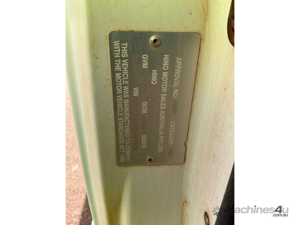 CP: 09/2019,Hino,FC 500 1124,Garbage Compactor,Automatic,Leaf Springs ,4 Cyl,Diesel,14544 (Kms. Showing on Odometer),2178 (Hrs. Showing on Hour meter),Colour: White,Unregistered,VIN: JHDFC2AG1XXX10232,Length: 6.4 m,GVM: 11000,GCM: 16000,Sold with No Plates