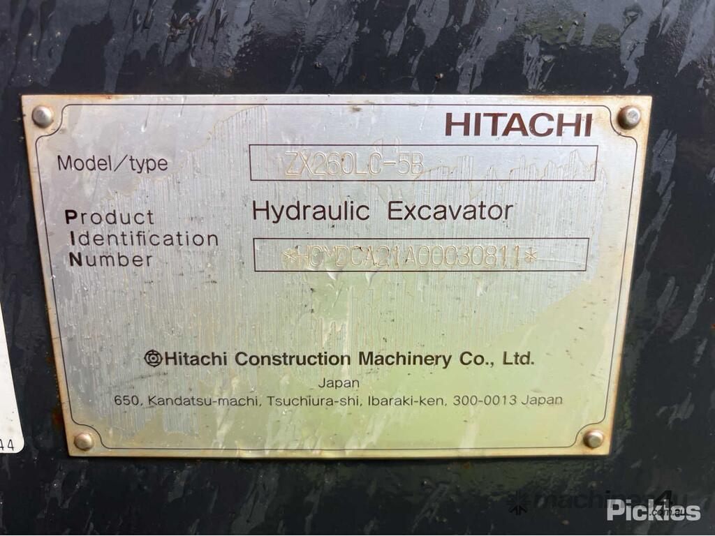 CP: CIRCA 2019,Hitachi,ZX260LC-5B,Excavator (Steel Tracked),Engine #: AL-4HK1XZSA-02,6 Cyl,Diesel Turbo,Odometer not visible,10244 (Hrs. Showing on Hour meter),Colour: Orange,Rego. No: NP(S21SGZ), Unregistered SA,VIN: HCMDCA21A00030811,Serial No: HCMDCA21A00030811,Sold with No Plates,Key No: P168