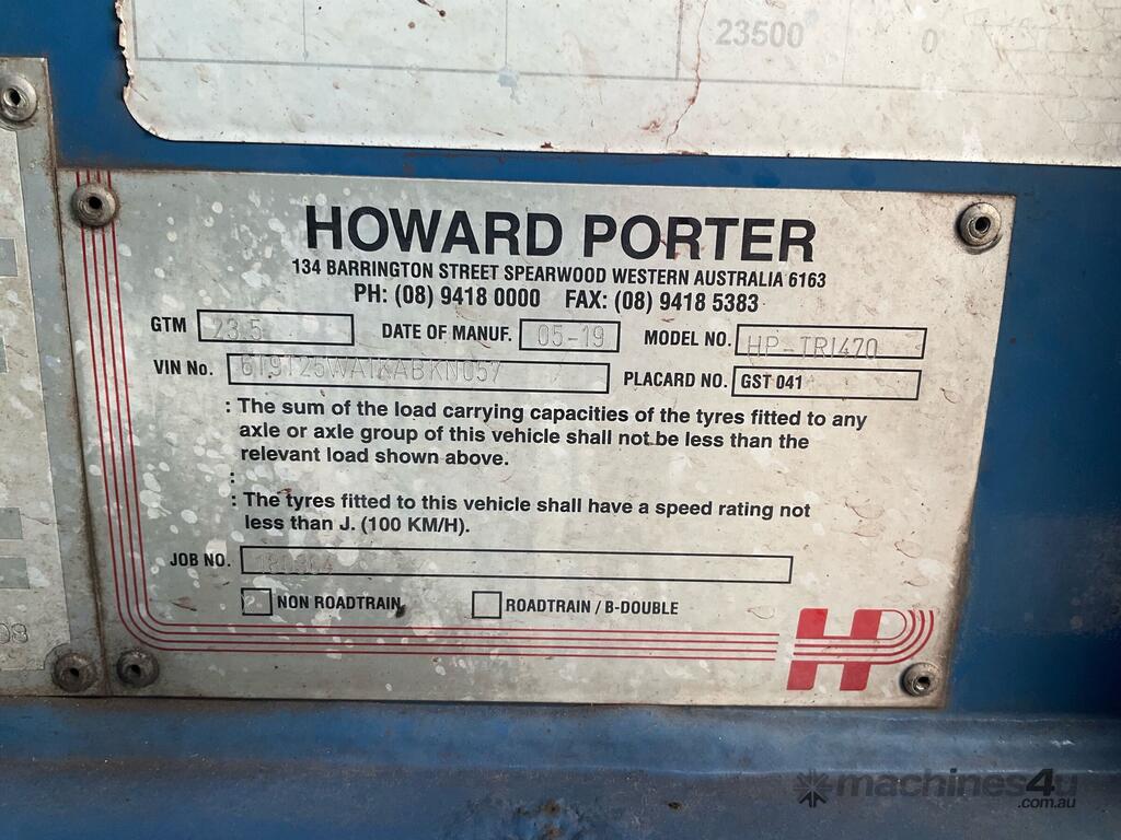 CP: 05/2019,Howard Porter,TRI470,Tri Axle Bulk Scrap Tipper,Hubometer not visible,Colour: Blue,Rego. No: NP(YO41FI), Unregistered NSW,VIN: 6T9T25WA1KABKN057,Sold with No Plates,WOVR Status: Repairable Write-Off,Incident Type: Impact