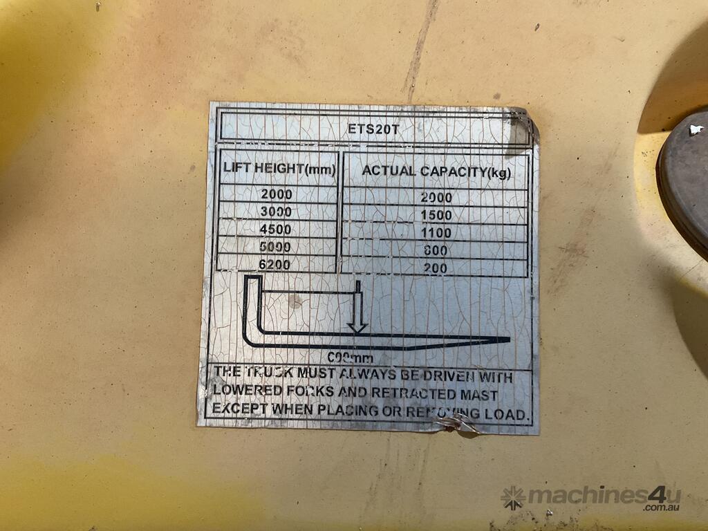 CP: CIRCA 2019,Hyster,ETS20D,Walk Behind Straddle Stacker,Battery,Odometer not visible,Colour: Yellow,Unregistered,Serial No: 05585,Sold with No Plates,Key No: 54