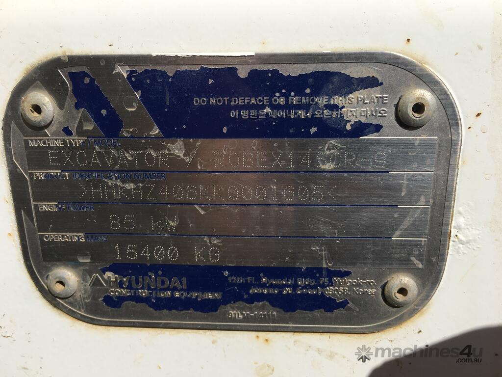 2019 Hyundai R145CRD-9 Excavator 14.5T Close Radius With Tilt Hitch :      $64,500 AUD($70,950 Inc. GST)