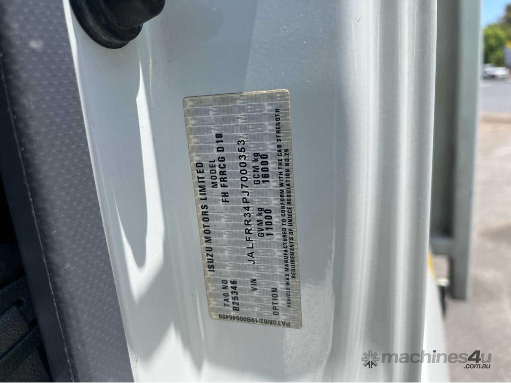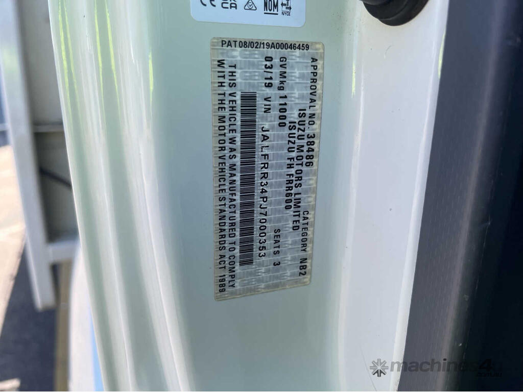 CP: 03/2019,Isuzu,FRR 110-260,EWP,Manual,Leaf Spring ,6 Cyl,Diesel Turbo,6 Gears,79956 (Kms. Showing on Odometer),Hourmeter not visible,Colour: White,Rego. No: NP(XS06BG), Unregistered NAT,VIN: JALFRR34PJ7000353,Key No: P67,Length: 7.9 m,GVM: 11000,GCM: 16000,Sold with No Plates,Key No: P67