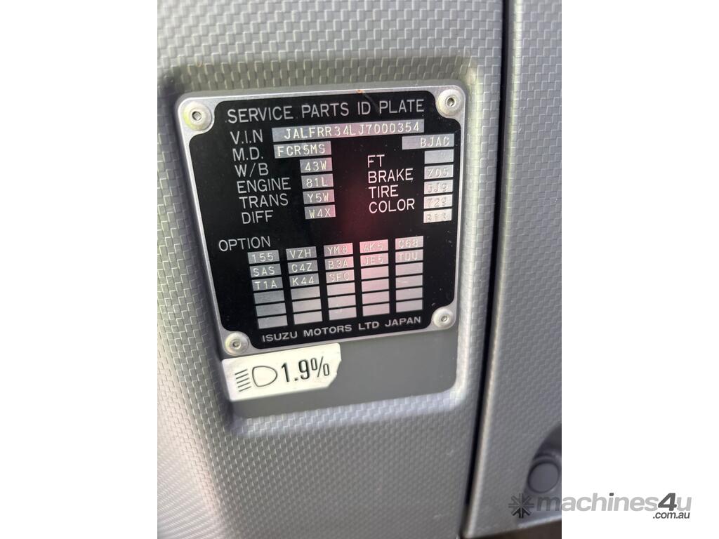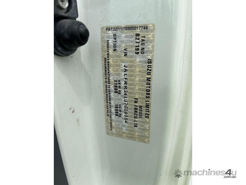 CP: 05/2019,Isuzu,FRR 110-260,Refrigerated Pantech,Automatic,Diesel,297132 (Kms. Showing on Odometer),Hourmeter not visible,Colour: White,Rego. No: XV87GU VIC,VIN: JALFRR34LJ7000354,Length: 20 ft,GVM: 11000,GCM: 16000,Sold with No Plates,WOVR Status: WOVR N/A,Incident Type: Impact