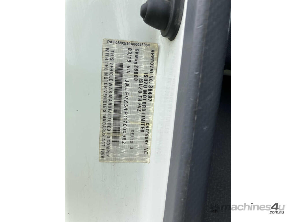 CP: 03/2019,Isuzu,FVZ 260-300,Water Cart,Automatic,Spring,6 Cyl,Diesel,Turbo,64014 (Kms. Showing on Odometer),4671 (Hrs. Showing on Hour meter),Colour: White,Rego. No: NP(XN74MQ), Unregistered NAT,VIN: JALFVZ34PG7000982,GVM: 26000,GCM: 36000,Sold with No Plates