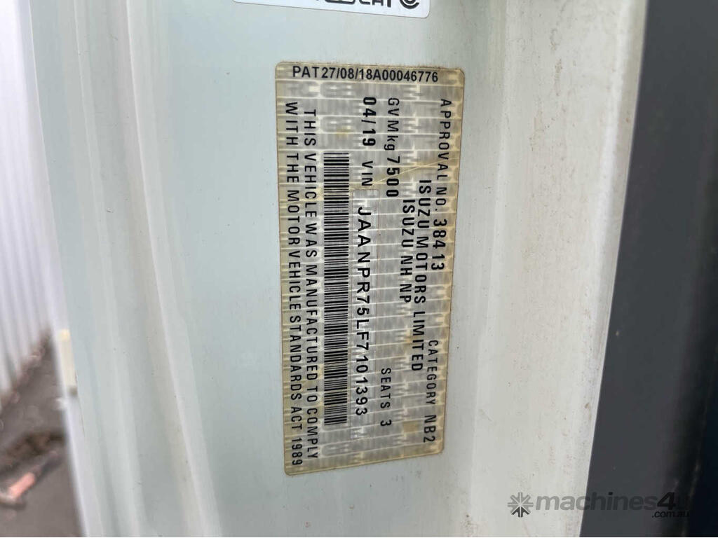 CP: 04/2019,Isuzu,NPR 75-190,Tipper Body,Automatic,Leaf Spring Suspension,Isuzu 4HK1,4 Cyl,Diesel Turbo,200158 (Kms. Showing on Odometer),3749 (Hrs. Showing on Hour meter),Colour: White,Rego. No: XN65JE NSW,Rego expiry: 16/10/2026,VIN: JAANPR75LF7101393,Length: 7 m,GVM: 7500,GCM: 11000,Plates to All