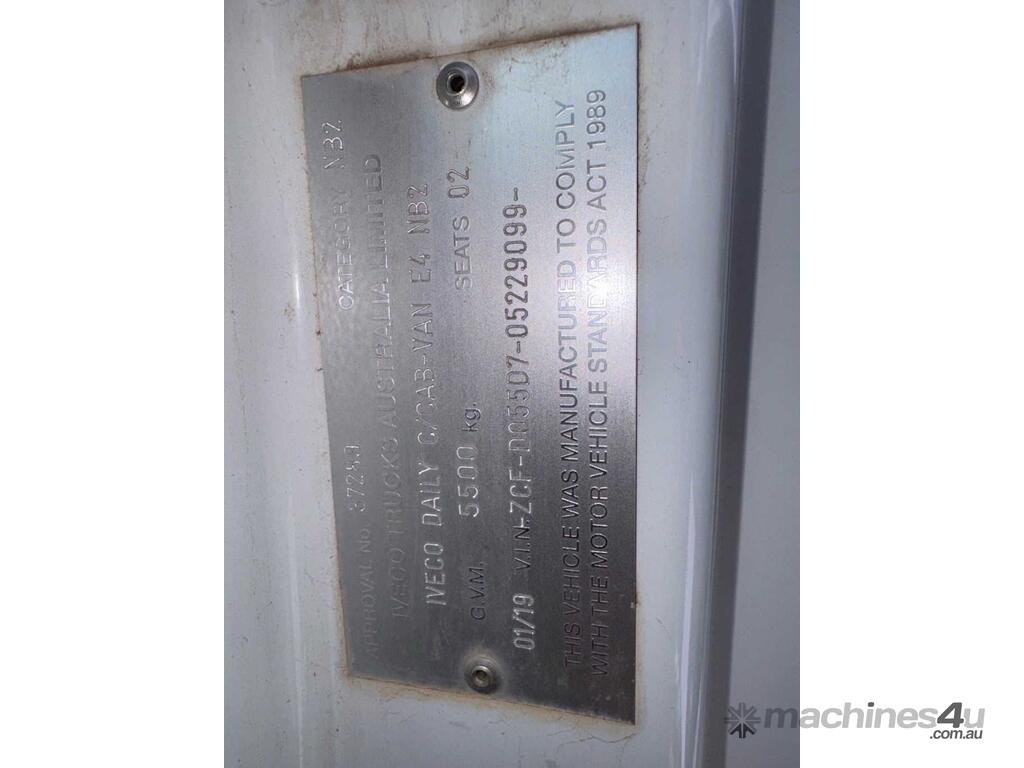 CP: 01/2019,Iveco,Daily 55-180,Service Body,Manual,spring,4 Cyl,Diesel,Odometer not visible,Hourmeter not visible,Colour: White,Rego. No: XQ06BF QLD,VIN: ZCFD055D,GVM: 5500,GCM: 9000,Sold with No Plates,WOVR Status: WOVR N/A,Incident Type: Not Applicable