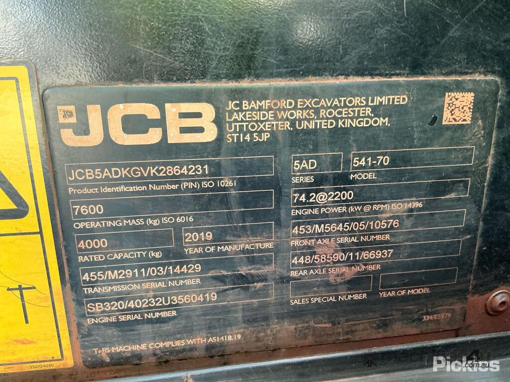 CP: CIRCA 2019,Built: 01/2019,JCB,541-70,Telehandler,4 Cyl,Diesel Turbo,Odometer not visible,11920 (Hrs. Showing on Hour meter),Rego. No: NP(10294465), Unregistered,Serial No: JCB5ADKGVK2864231,Sold with No Plates,Key No: 597