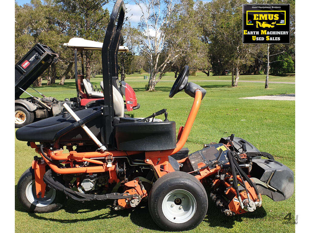 Machine Information – 62”cut, Gear-type hydraulic motor with backlap control valve, ROPS frame, Swing-out centre reel, Adjustable Reel Drop and Reel Sequence, Ergonomic controls.