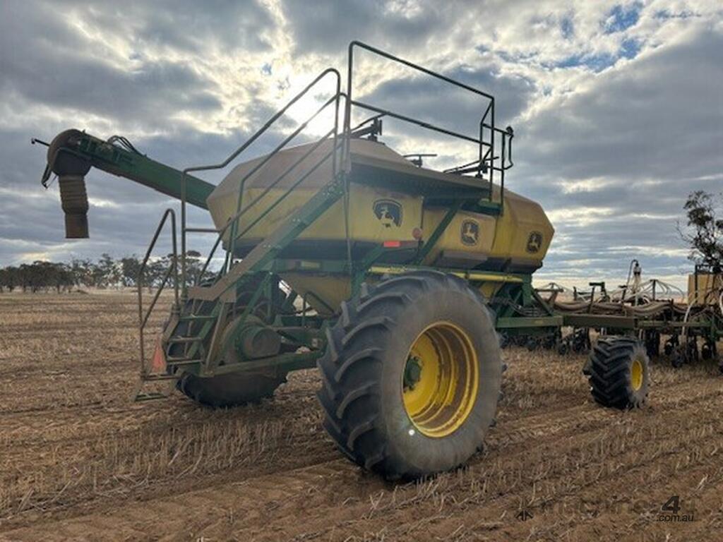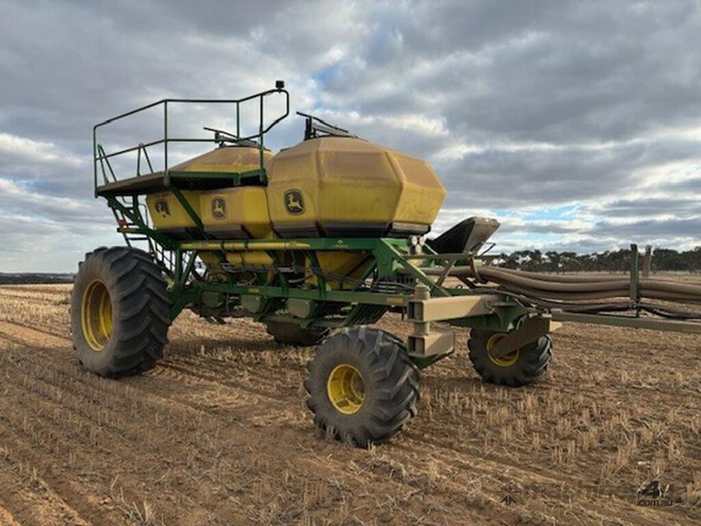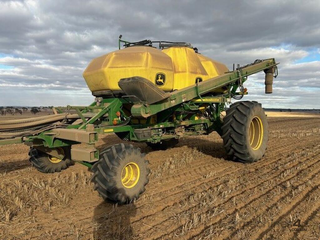 2019 John Deere 1910 air cart, 340 Bu (12,000L), 3 tank tow behind, 12" load/unload conveyer, 3m tread spacing, single shoot (can be upgraded to dual shoot) with section control meters, single fan, available early 2026.