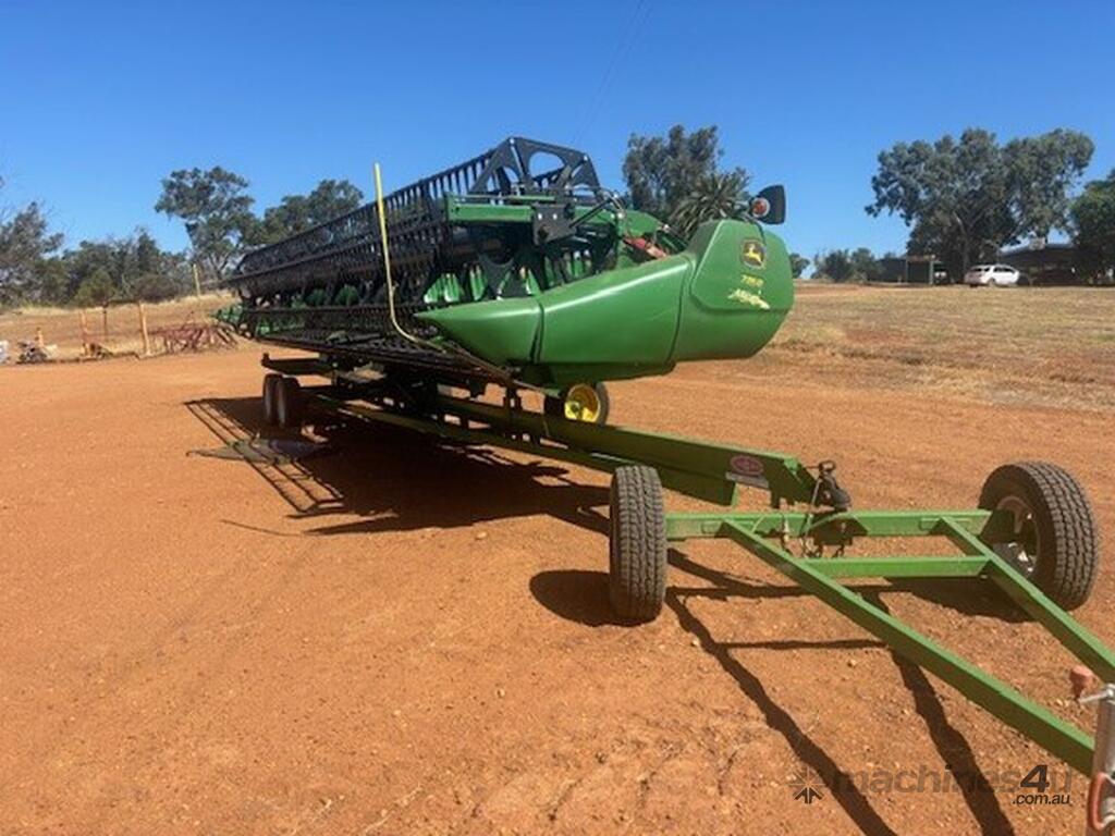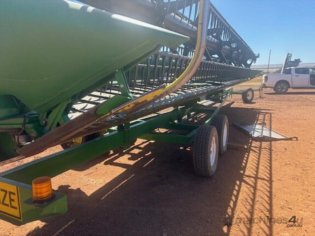 2019 John Deere735D, 35FT Cutting platfrom, Top Cross auger, all in good condition. Comes with Conquest trailer