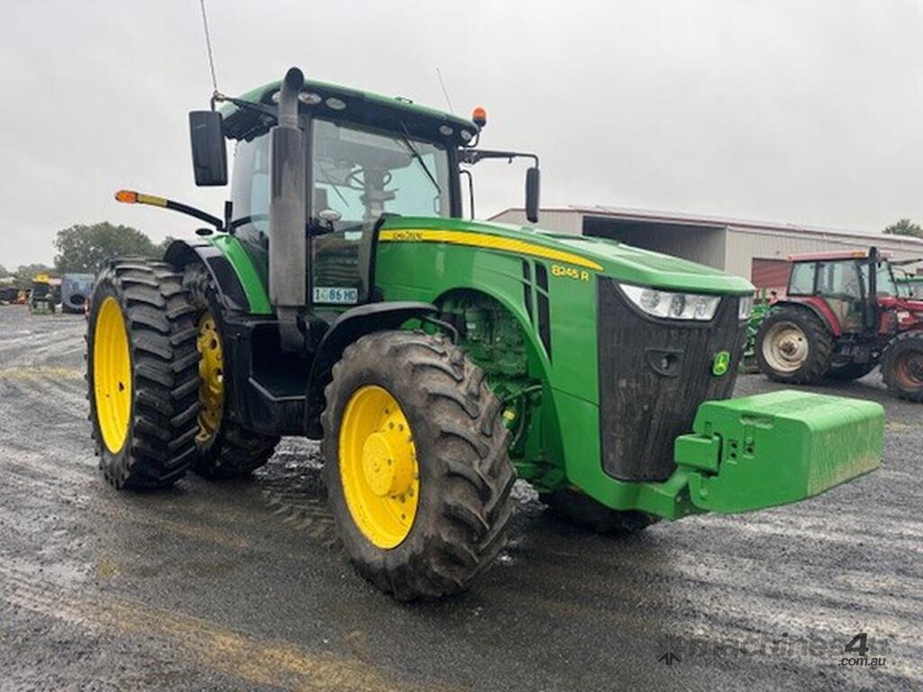 John Deere 8245R Large Frame Row Crop Tractor, 2019 model, 245hp 9L 6 cylinder engine, 42Km/H Infinitely Variable Transmission, Independent Link Suspension, front brakes, dual rear 480/80R50 tyres, front 480/70R34 tyres, 4 rear Electro Hydraulic remotes, Front weights, Auto Trac ready, 7460hrs, Gen 4 display, Good order, $200,000+GST