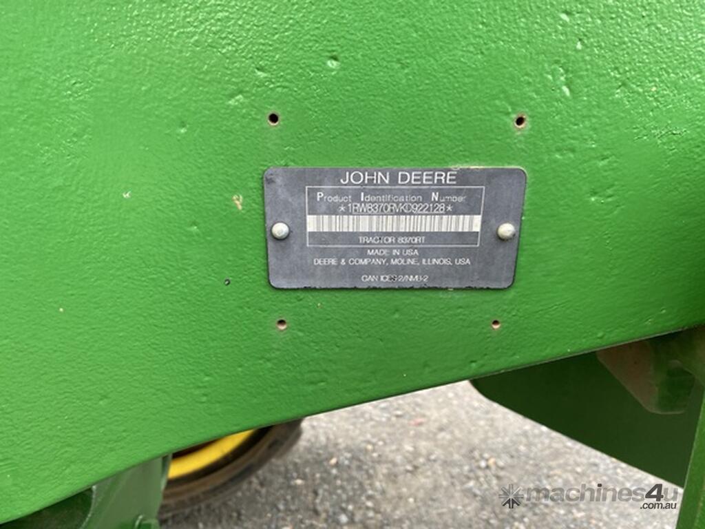 John Deere 8370RT, 1585 Hours, IVT 42K Transmission, Gen 4 Screen, Cabin Suspension, 60GPM Pump with four remotes, Three point linkage with quick hitch, 18 inch tracks with new mid rollers, Base and 22 front weights, Front frame side weights and front idler weights.