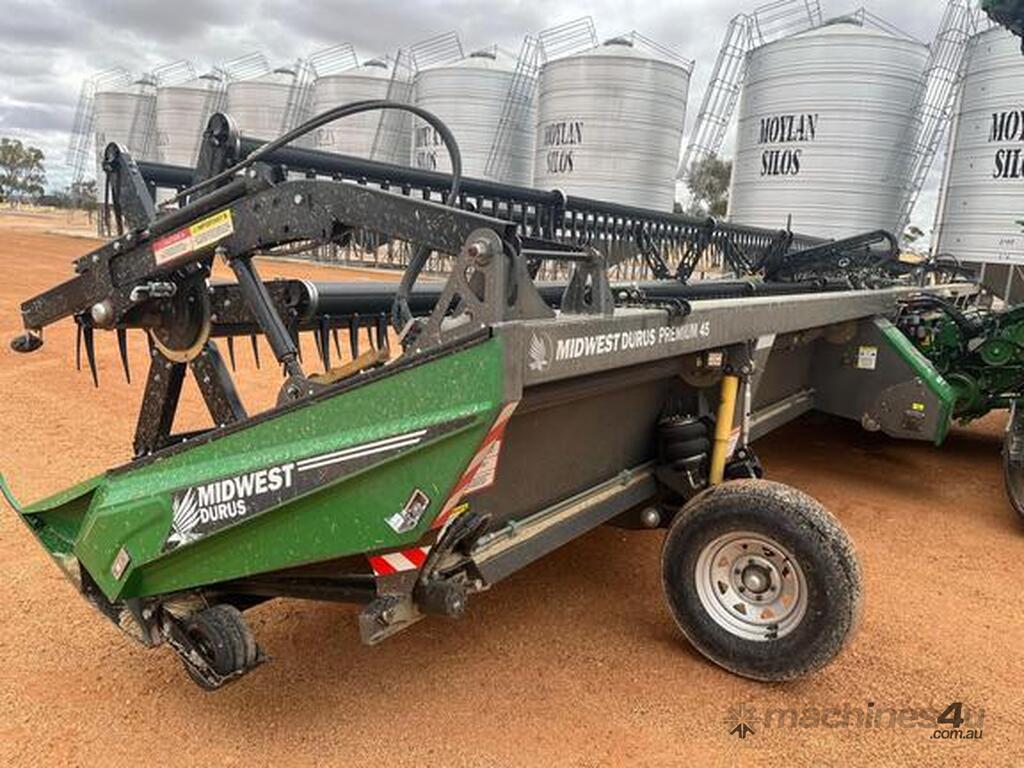 2019 JOHN DEERE S780 COMBINE, 1957 ROTOR HOURS, DUAL 650/85R38 DRIVE TYRES, REAR TYRES VF620/70R26, PREMIUM CAB, LED AND HEADER EXTREMITY LIGHTS, COMBINE ADVISOR, ACTIVE YIELD, JDLINK, UNLOADING AND REAR VIEW CAMERA, GEN 4 DISPLAY WITH EXTENDED MONITOR, NO RECEIVER, LATERAL TILT FEEDER HOUSE WITH FORE/AFT TILT, TRISTREAM ROTOR, ACTIVE CONCAVE ISOLATION, POWER FOLDING GRAIN TANK LIDS, 8.7M AUGER, STRAW CHOPPER WITH POWER CAST TAILBOARD, PRODRIVE TRANS. 2018 MIDWEST DURUS PREMIUM 45' DRAPER WITH TOP AUGER & TRAILER. MACHINES PRESENT VERY WELL, SELLING OBC, PLEASE CALL FOR CONTACT DETAILS.