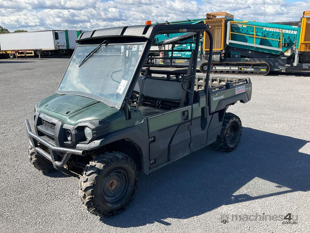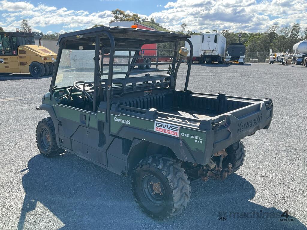 CP: CIRCA 2019,Kawasaki,KAFT00E,Four Wheel Drive Farm Cart,Engine #: 014153,3 Cyl,Diesel,17654 (Kms. Showing on Odometer),1740 (Hrs. Showing on Hour meter),Colour: Green,Unregistered,VIN: N/V,Serial No: 1,Sold with No Plates,Key No: 359E