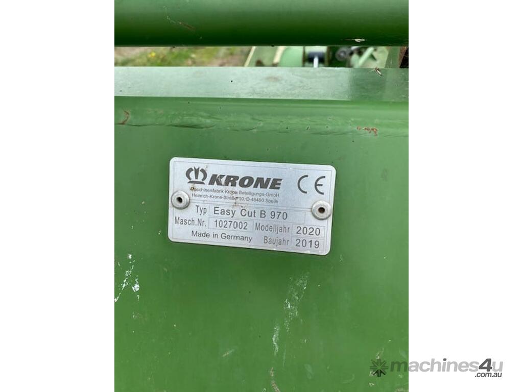 CP: CIRCA 2019,Krone,Easy Cut B970,Disc Mower,Odometer not visible,Hourmeter not visible,Unregistered,Serial No: 1027002,Sold with No Plates,WOVR Status: WOVR N/A,Incident Type: Impact