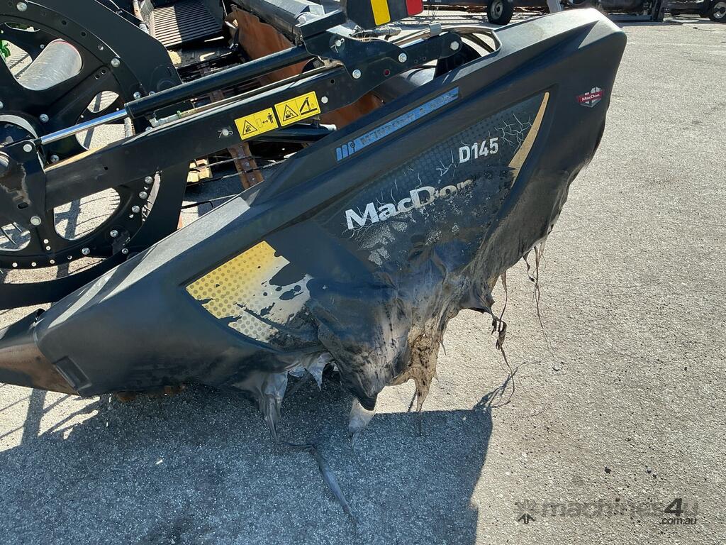 CP: CIRCA 2019,Built: 01/2019,MacDon,D145,Header Comb,Odometer not visible,Hourmeter not visible,Colour: Black,Unregistered,Serial No: 3599698-19,Sold with No Plates,WOVR Status: WOVR N/A,Incident Type: Fire