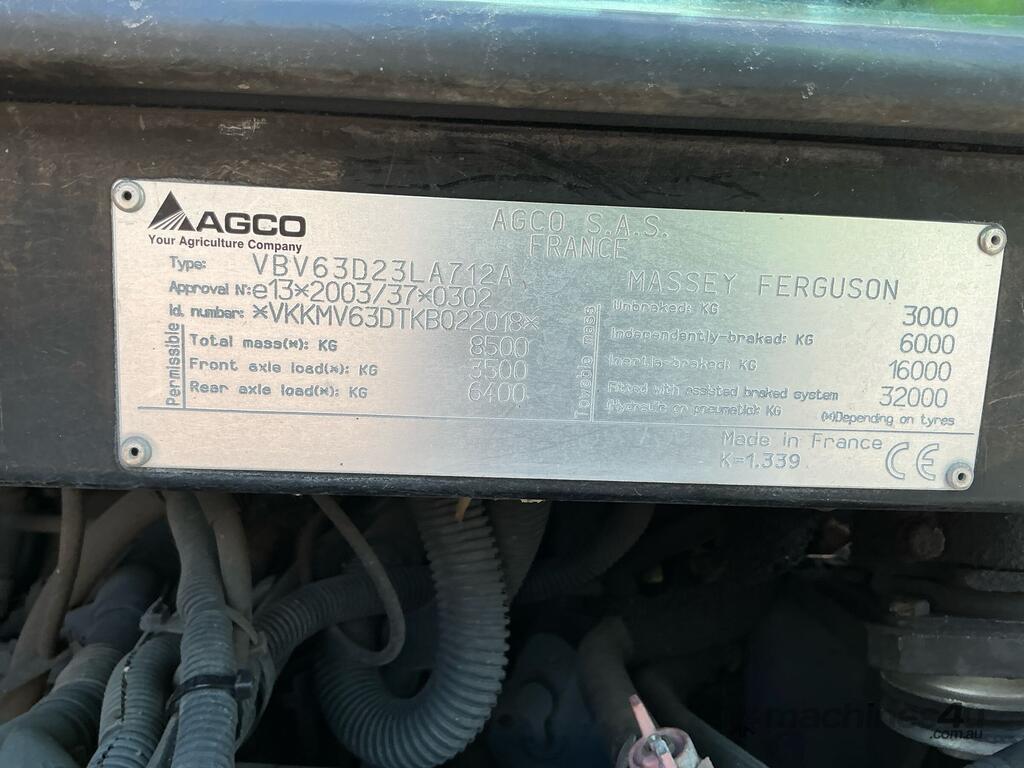 CP: CIRCA 2019,Massey Ferguson,4WD Tractor,4 Cyl,Diesel,Odometer not visible,9784 (Hrs. Showing on Hour meter),Colour: Red,Rego. No: NP(1IPD071), Unregistered,VIN: VKKMV63DTKB022018,Serial No: VKKMV63DTKB022018,ROPS No: undefined,Sold with No Plates,Key No: 246