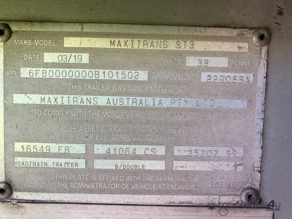 CP: 03/2019,Maxitrans,ST3,Tri Axle Pantech Trailer,1015032 (Kms. Showing on Hubometer),Colour: Red,Rego. No: NP(YV19EE), Unregistered NAT,VIN: 6F80000000B101502,Serial No: NULL,Sold with No Plates,WOVR Status: WOVR N/A,Incident Type: Not Applicable