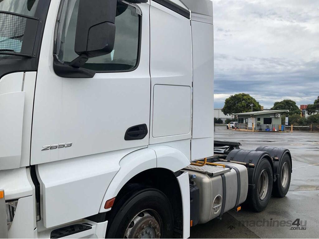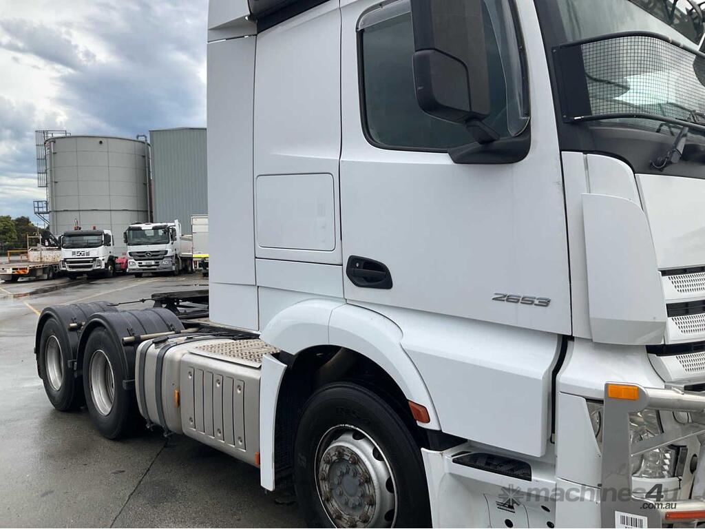 CP: 02/2019,Mercedes Benz,Actros 2653,Prime Mover,Automatic,Airbag,6 Cyl,Diesel,603219 (Kms. Showing on Odometer),10114 (Hrs. Showing on Hour meter),Colour: White,Rego. No: NP(XV3EP), Unregistered,VIN: WDB5406,Key No: 1,Length: 6.9 m,GVM: 26000,GCM: 70000,Sold with No Plates,Key No: 1