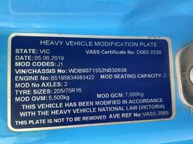 CP: 03/2019,Mercedes Benz,Sprinter,Pantech (Day Cab),Automatic,Spring,Engine #: 3422,4 Cyl,Diesel Turbo,242231 (Kms. Showing on Odometer),Hourmeter not visible,Colour: Blue,Rego. No: NP(XN74LB), Unregistered NSW,VIN: WDB9071552N030938,Key No: 372E,Length: 7.1 m,GVM: 5500,GCM: 7000,Sold with No Plates,Key No: 372E