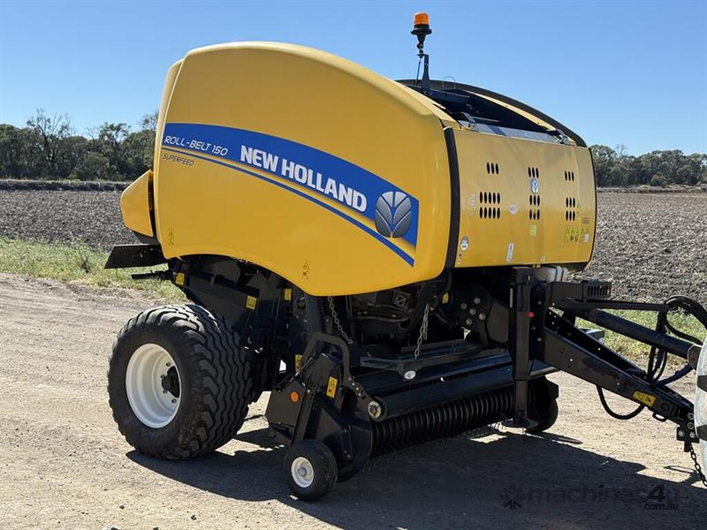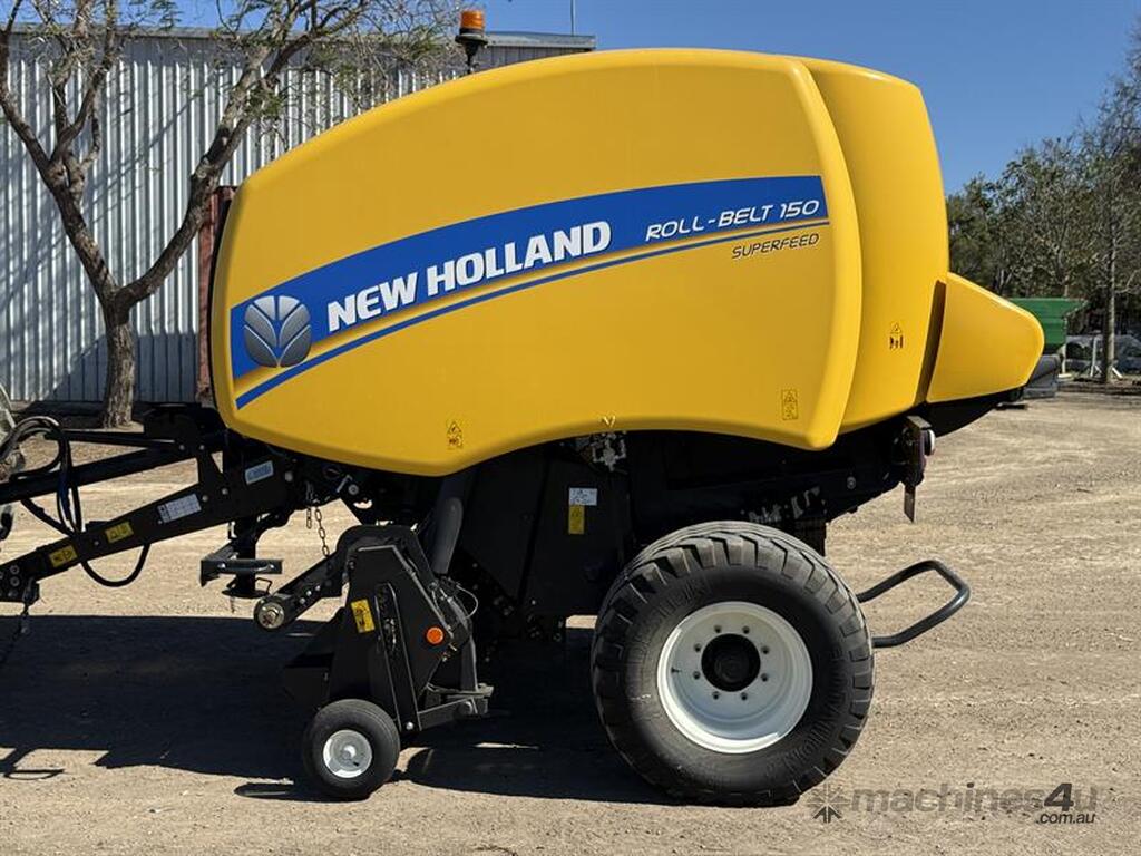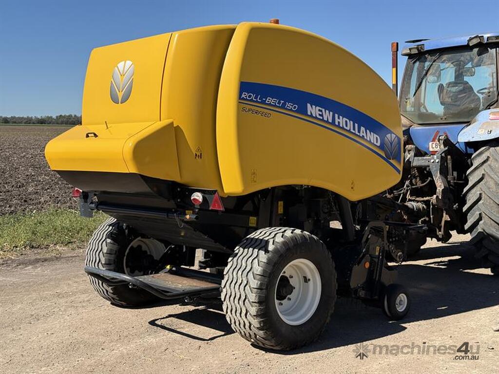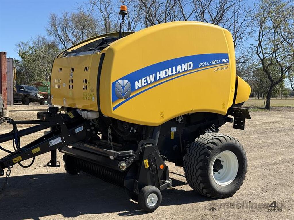 2019 NEW HOLLAND ROLL-BELT 150 BALER, S/N: PLK50Y75H07376013, 14,048 BALE COUNT. LOCATION: THEODORE, QLD 4719. INSPECTION & COLLECTION: BY APPOINTMENT ONLY. ENQUIRIES: PETER VUICHOUD ON OR PETEREMERALDAUCTIONCENTRE