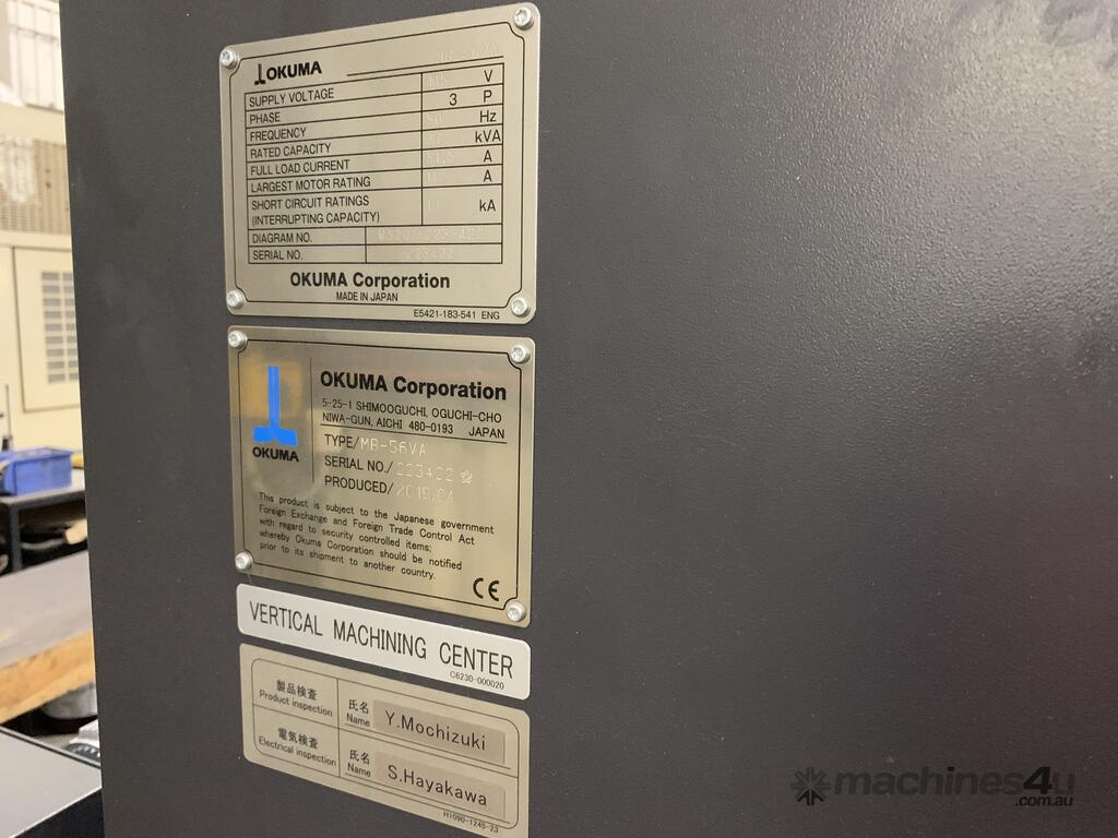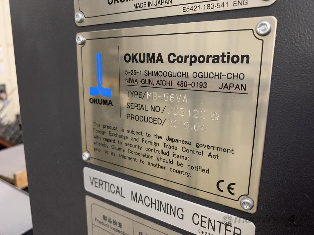 2019 OKUMA MB-56VA Ace Center, in excellent condition. Used mainly for finish machining moulding surfaces on injection moulds, now surplus to requirements. Low usage, hours are approximately 4000 hours.