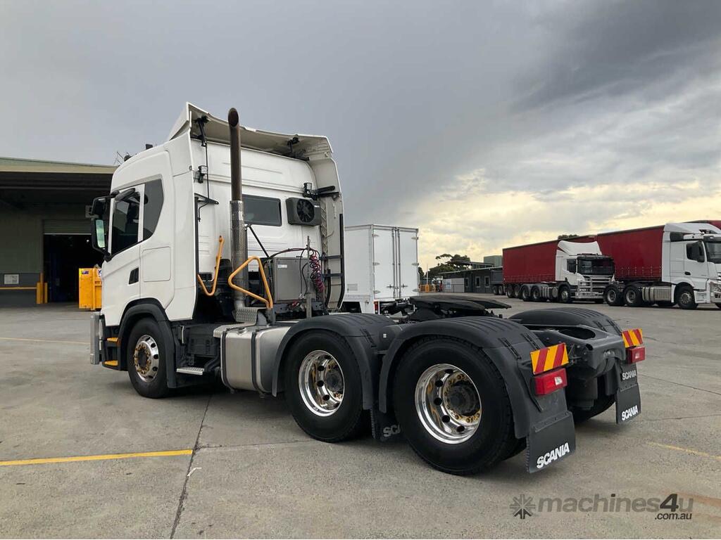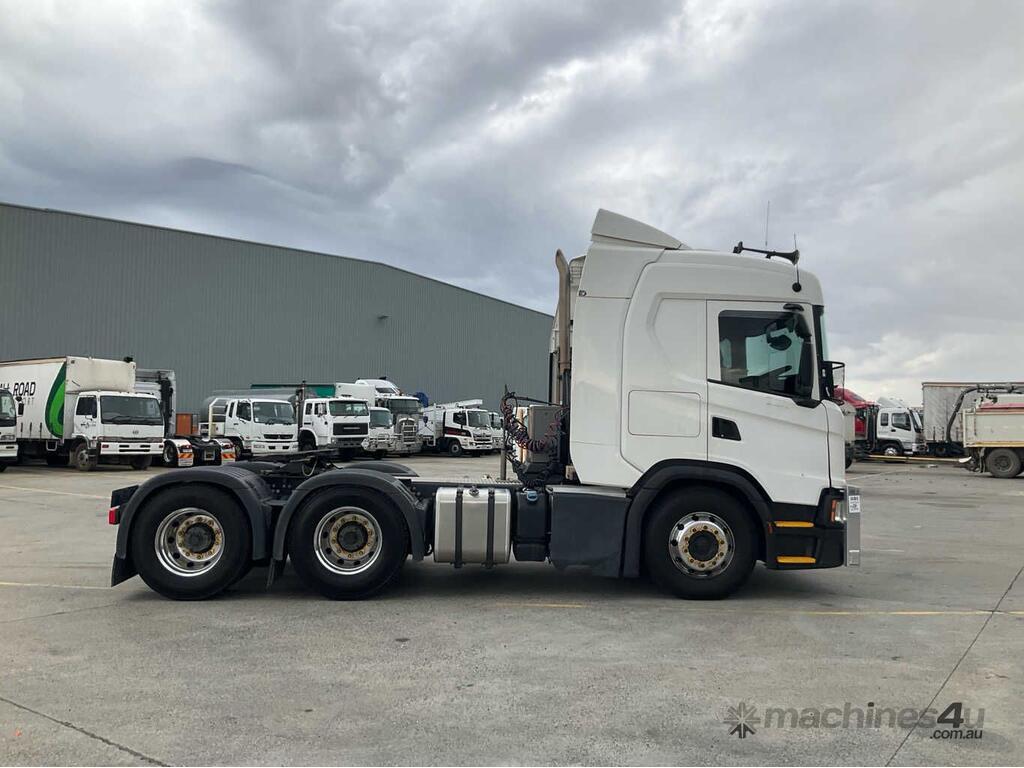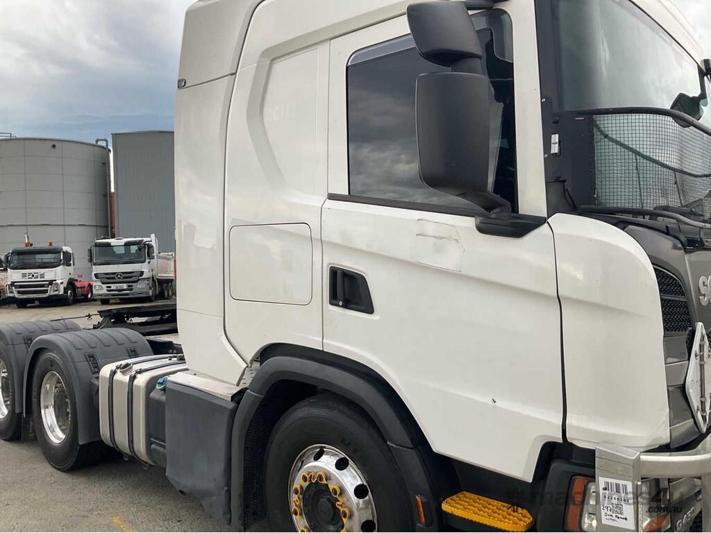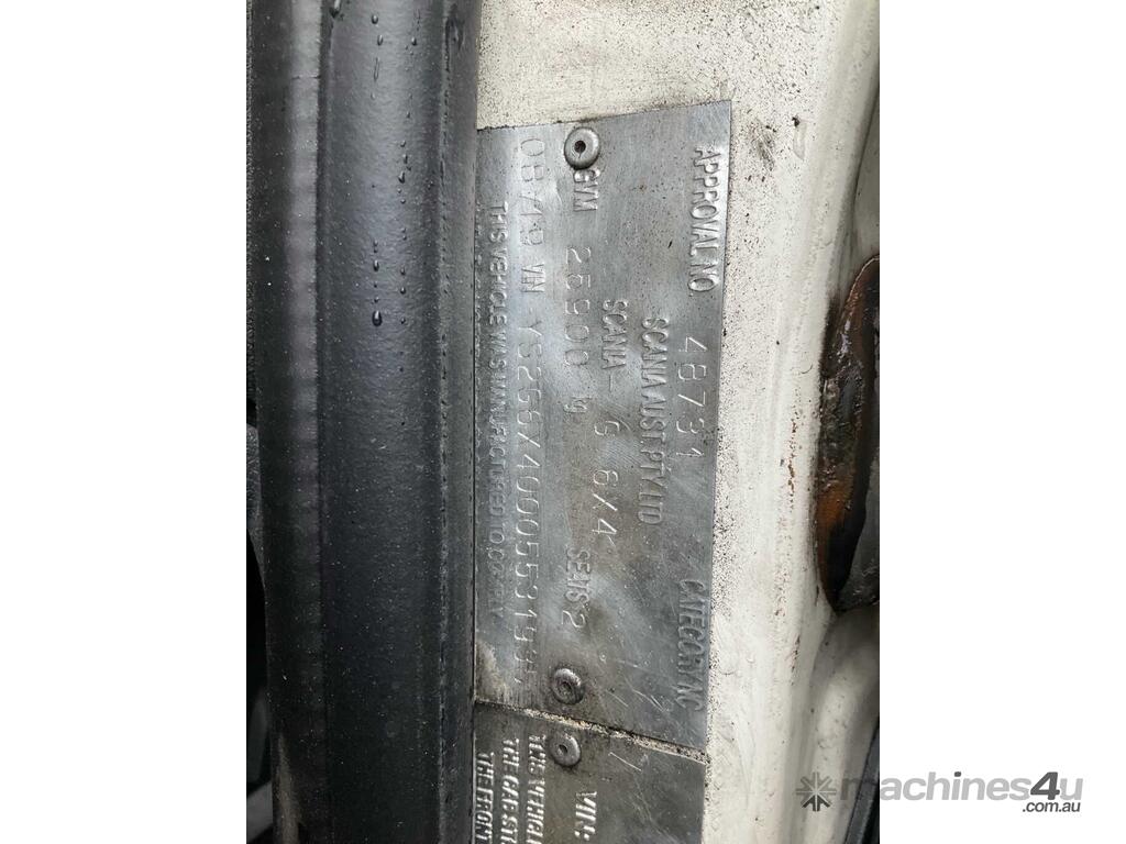 CP: 08/2019,Scania,G450,Prime Mover,Automatic,Airbag ,Engine #: 7132654,6 Cyl,Diesel,764206 (Kms. Showing on Odometer),13020 (Hrs. Showing on Hour meter),Colour: White,Unregistered,VIN: YS2G6X5,Key No: 297,Length: 6.5 m,GVM: 26100,GCM: 60000,Sold with No Plates,Key No: 297