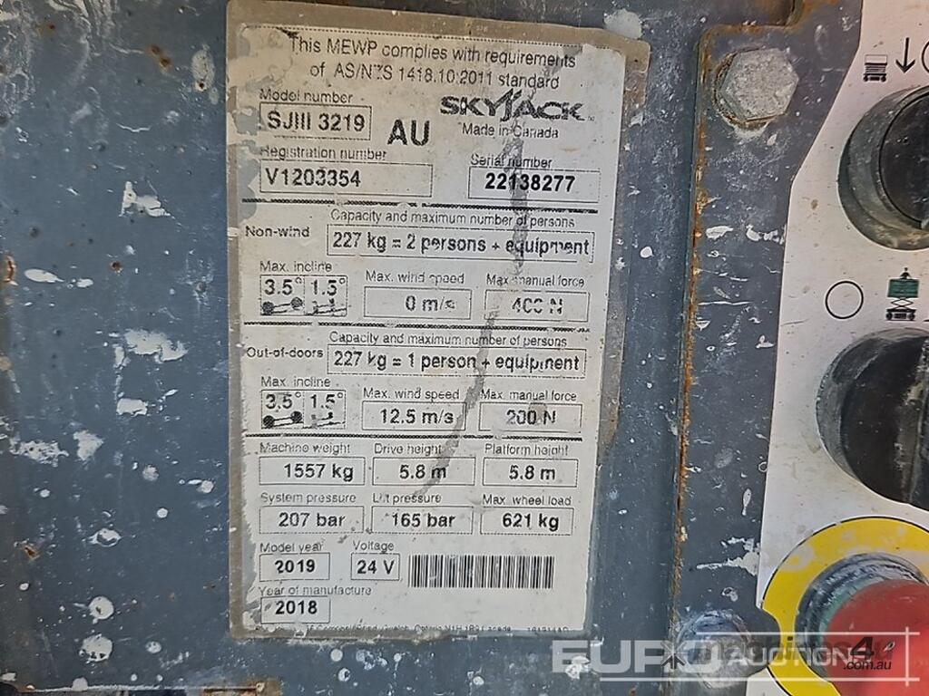 2019 SkyJack SJIII 3219 Electric Scissor Lift, 7.80m Working Height, 227kg Platform Capacity, Expanding Deck, Non-Marking Tyres (Non Runner) - 22138277