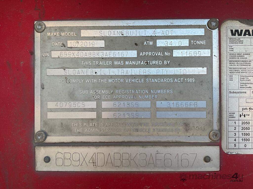 CP: 10/2019,Sloanbuilt Trailers,4-ADT,Quad Dog Tipping Trailer,Hubometer not visible,Colour: Silver,Rego. No: NP(YN84HY), Unregistered NSW,VIN: 6B9X4DABBK3AE6167,Sold with No Plates,WOVR Status: Statutory Write-Off,Incident Type: Impact