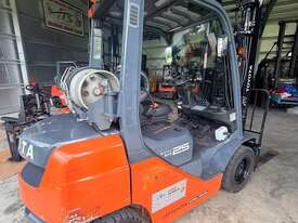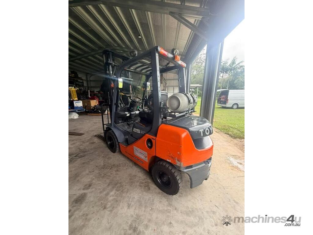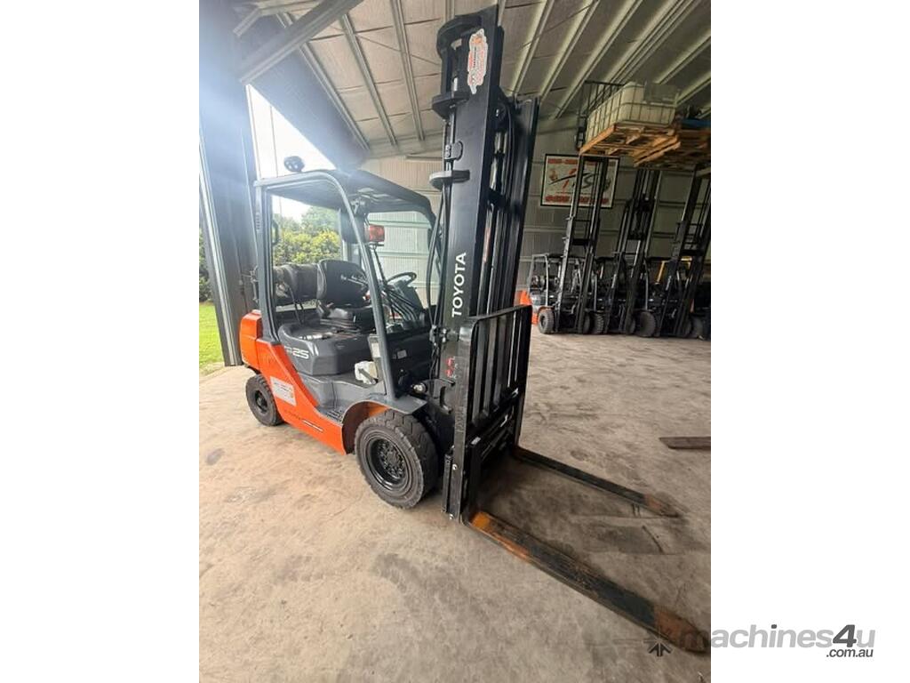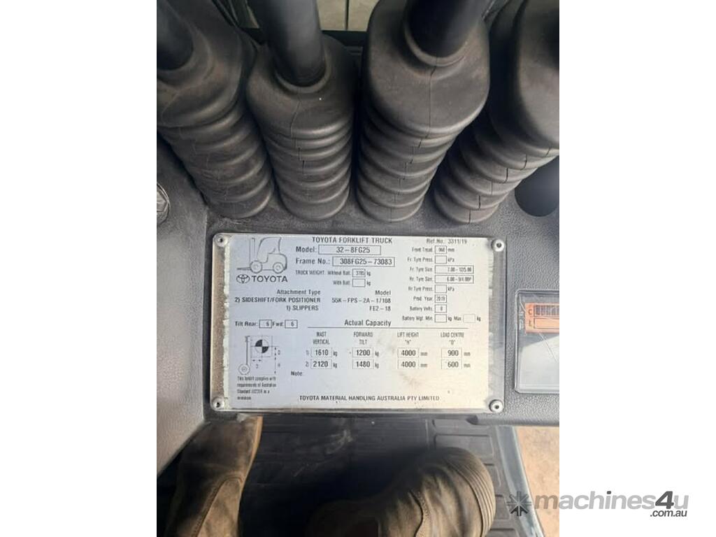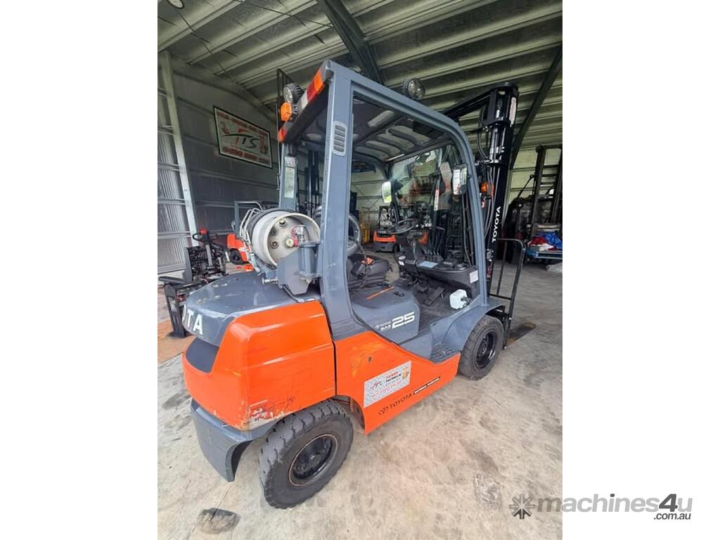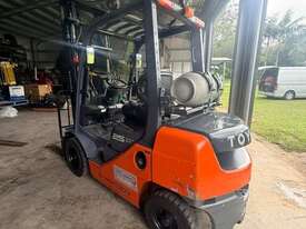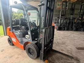 IMMACULATE FORKLIFT TOYOTA 32-8FG25 2.5 TON DELUX MODEL CLEAR VIEW MAST WITH YES GENUINE TOYOTA WEIGHT GUAGE & FORK POSITIONER