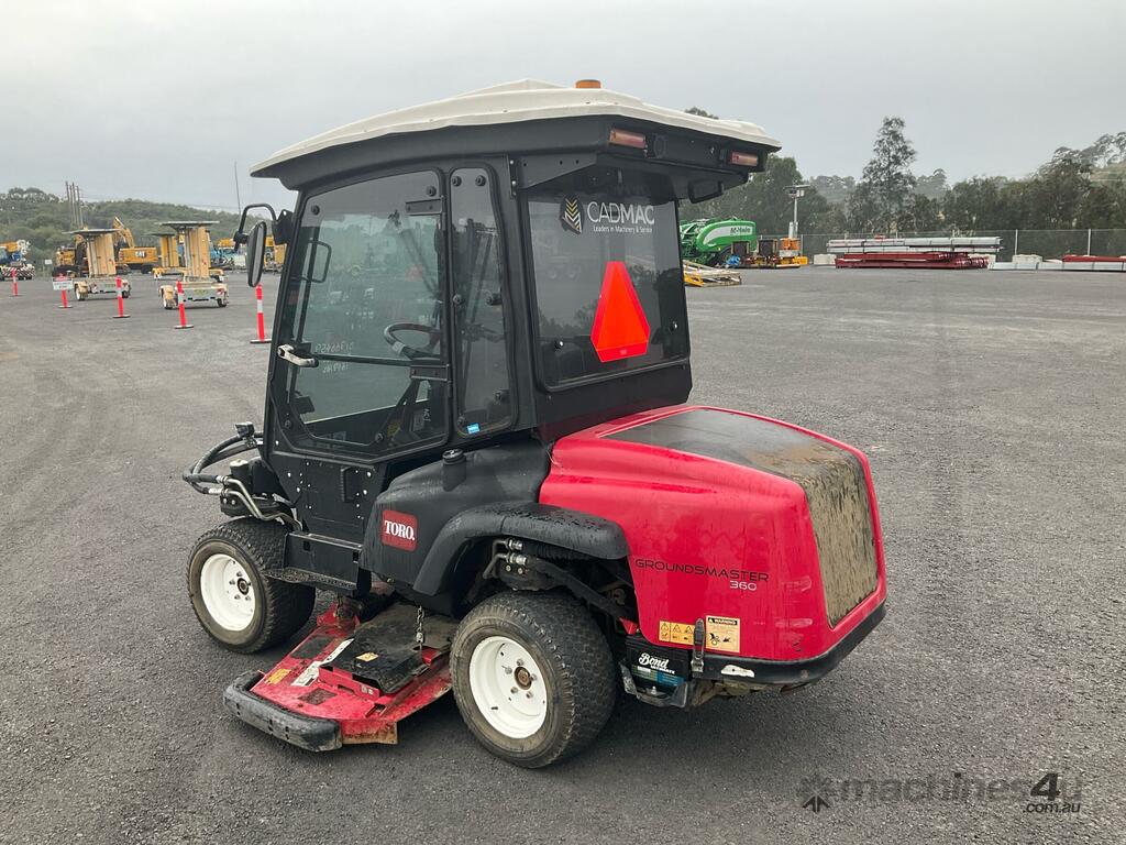 CP: CIRCA 2019,Toro,GroundsMaster 360,Ride On Mower (Underbelly),Engine #: 1JY5109,4 Cyl,Diesel,Odometer not visible,1649 (Hrs. Showing on Hour meter),Colour: Red,Unregistered,Serial No: ,ROPS No: undefined,Sold with No Plates,Key No: 232E