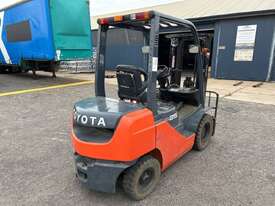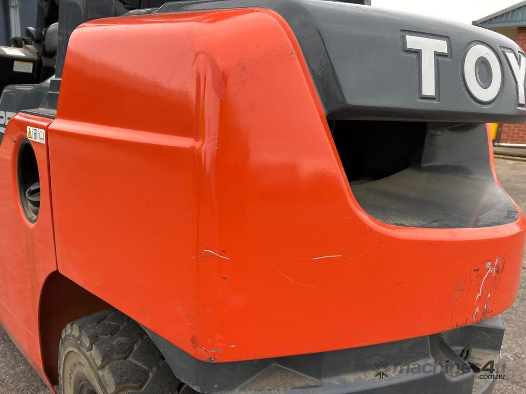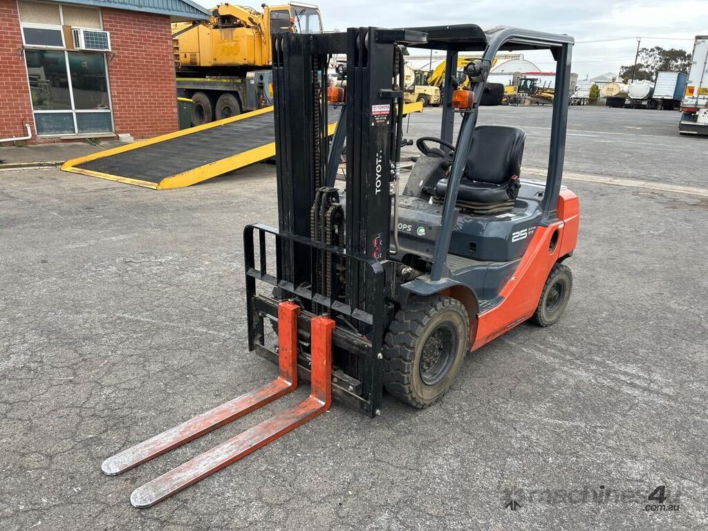 CP: CIRCA 2019,Toyota,62-8FD25,Forklift,4 Cyl,Diesel,Odometer not visible,330 (Hrs. Showing on Hour meter),Colour: Orange,Unregistered,Serial No: 608FD25-73326,Sold with No Plates,Key No: P119