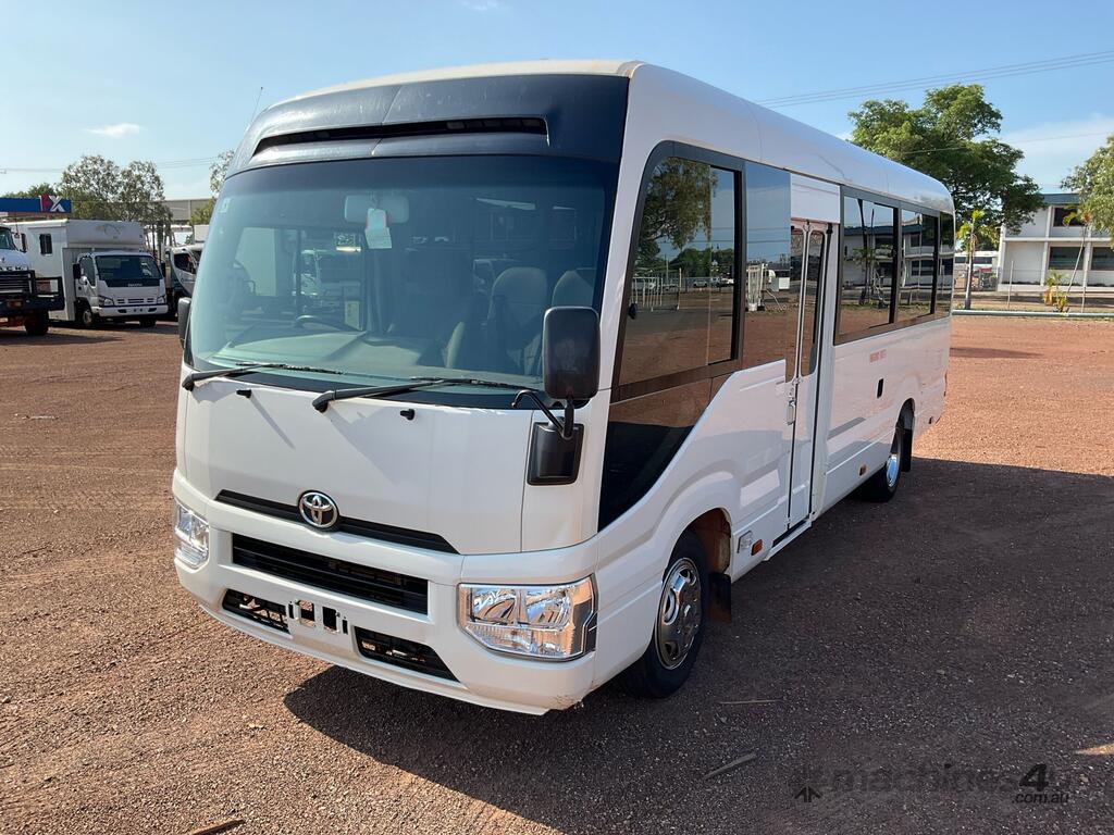 CP: 03/2019,Built: 02/2019,Toyota,Coaster,XZB70R Deluxe,Bus,Automatic,Leaf Springs ,Engine #: N04CUH22644,4 Ltr,4 Cyl,Diesel,4 Gears,65261 (Kms. Showing on Odometer),Hourmeter not visible,Colour: White,Rego. No: 831433 NT,VIN: JTGFP66,Length: 7.3 m,GVM: 5540,Sold with No Plates